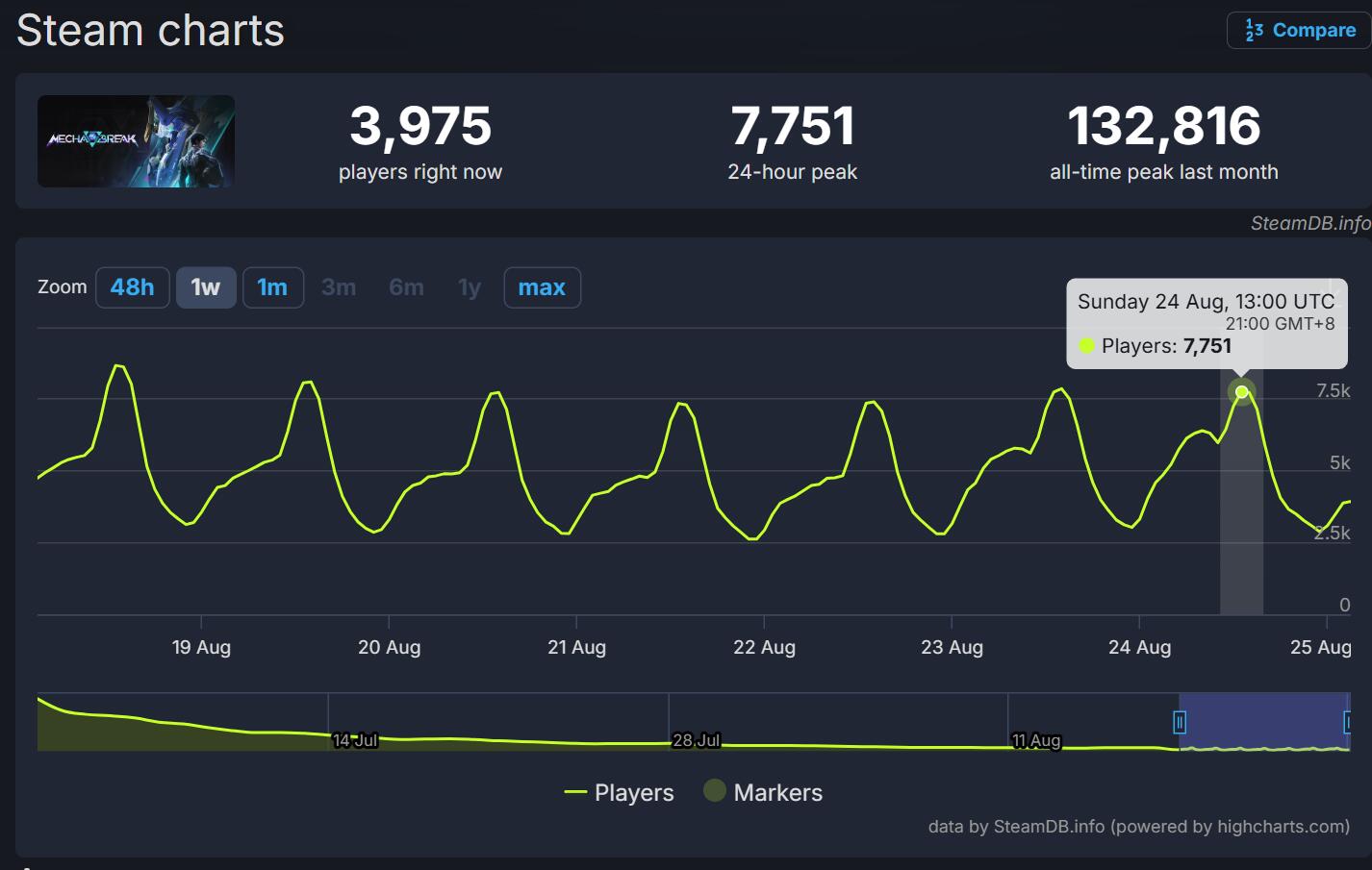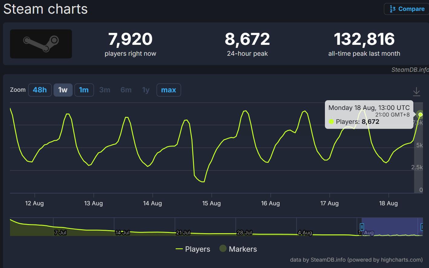其实可能只是他版本更新,这部分玩家有动力接着玩。今天的峰值跌破7500了。
