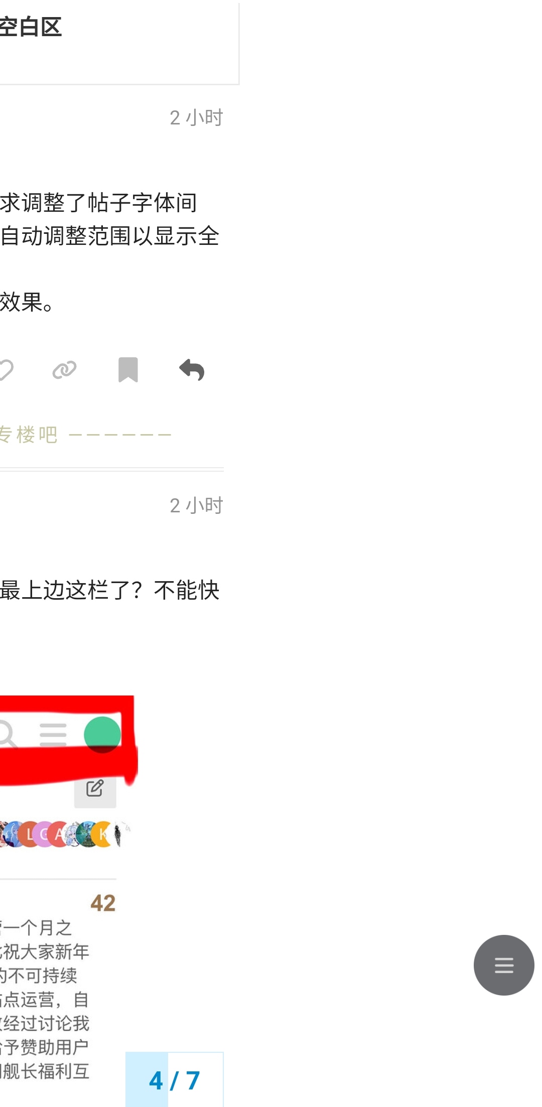 这个应该是因为先前按你们要求调整了帖子字体间距,变得更紧凑了,所以页面自动调整范围以显示全部内容。 修改了强制适配竖屏,看一下效果。