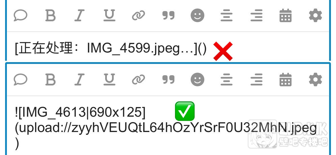 显示“正在上传”/“正在处理”请等待,此时并未上传完毕。出现(upload://xxxxxxx)才是上传成功。有坛u还不知道。 ps.论坛最早上传图片没完成时是直接不显示吧,后来才变成会出现“正在上传”?