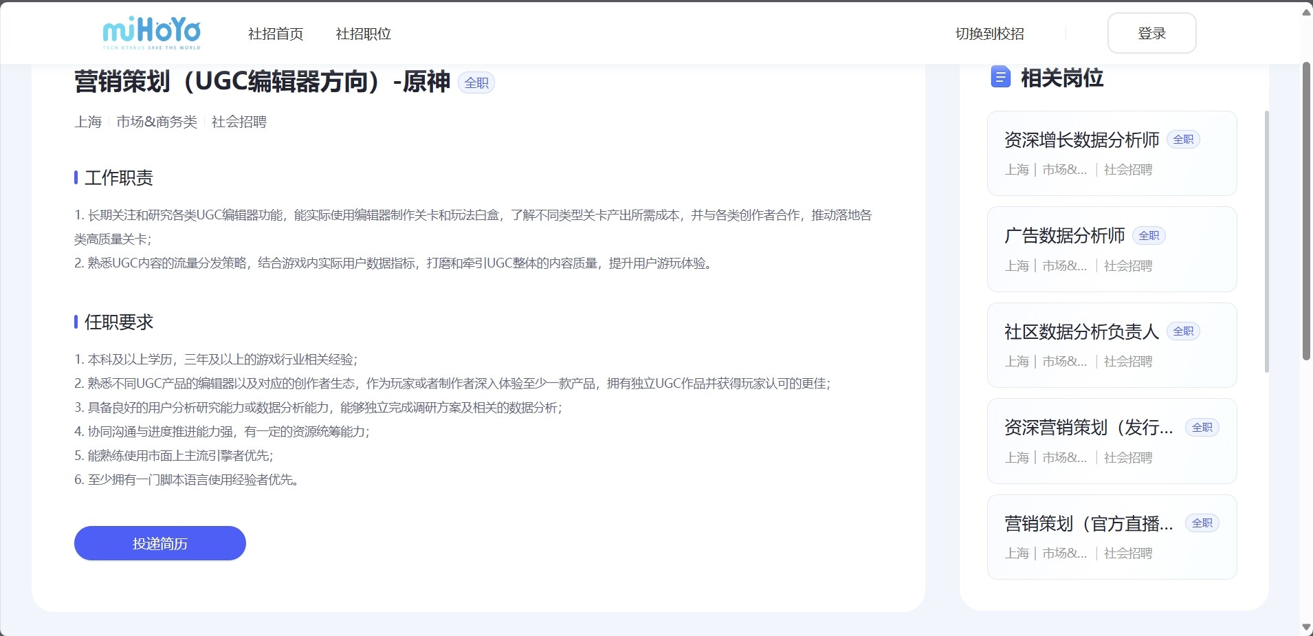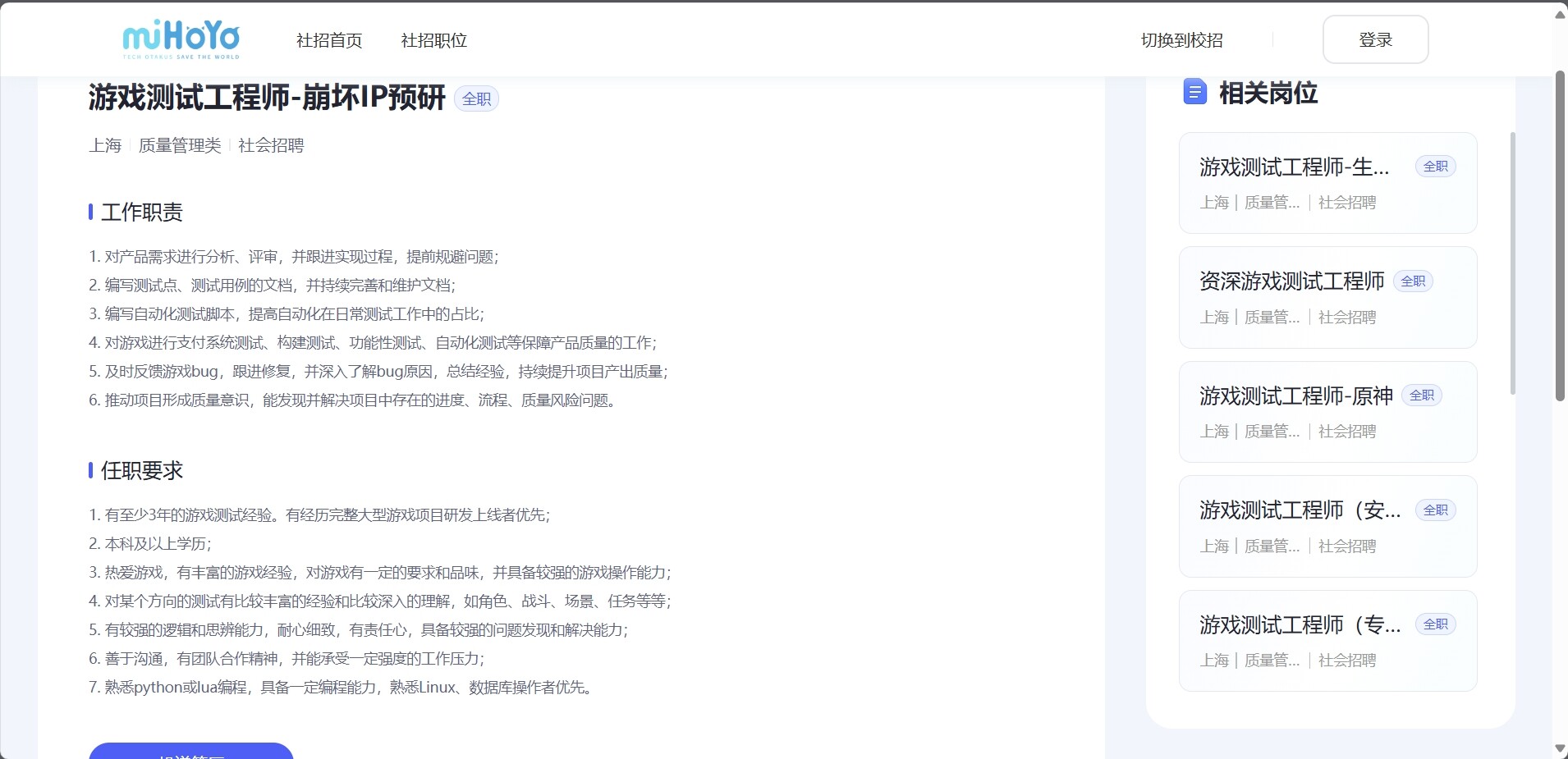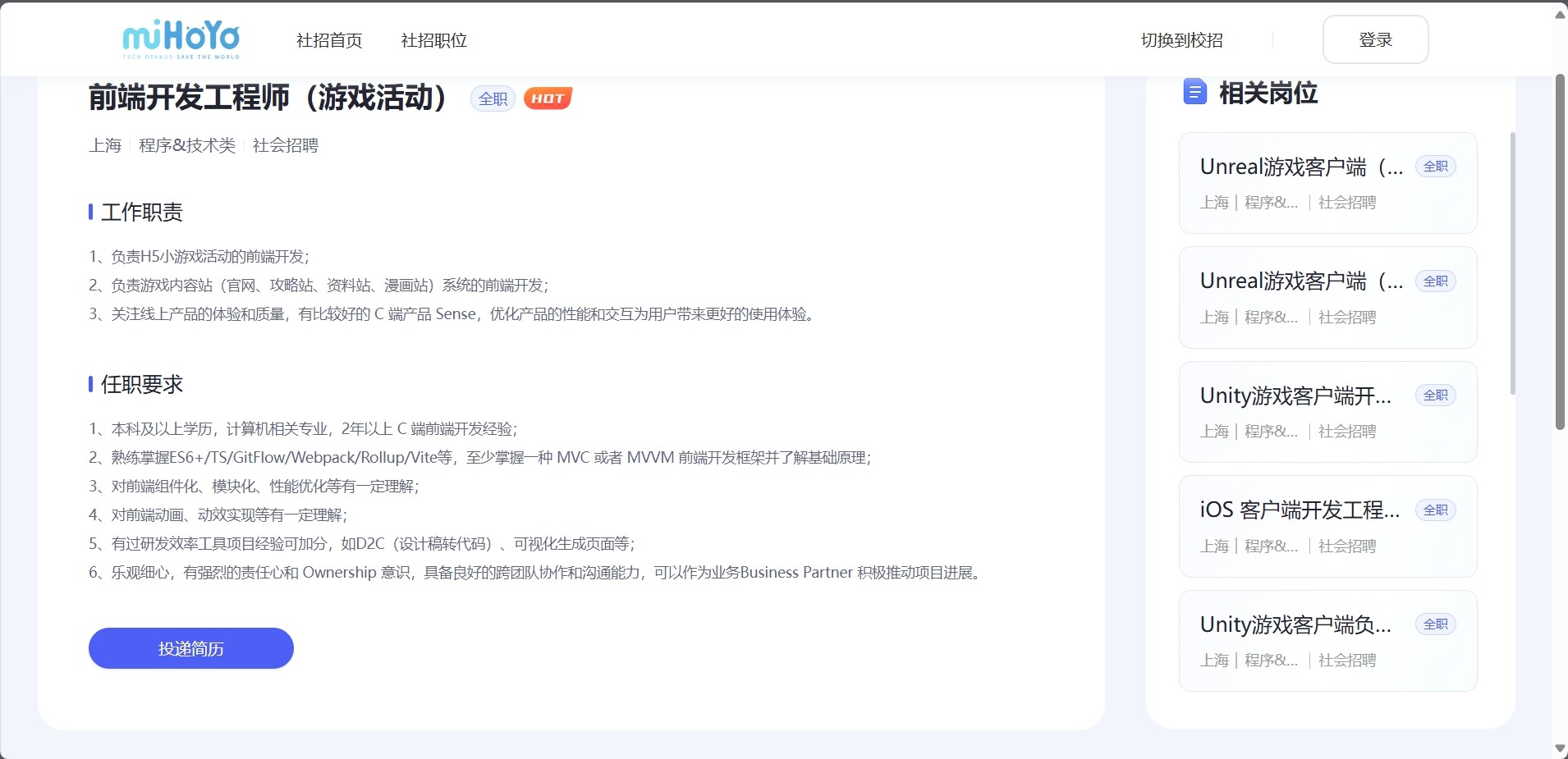 米哈游招聘信息记录(仅记录国内主体招聘),对于hoyoverse和ANOTK的欢迎你们补充