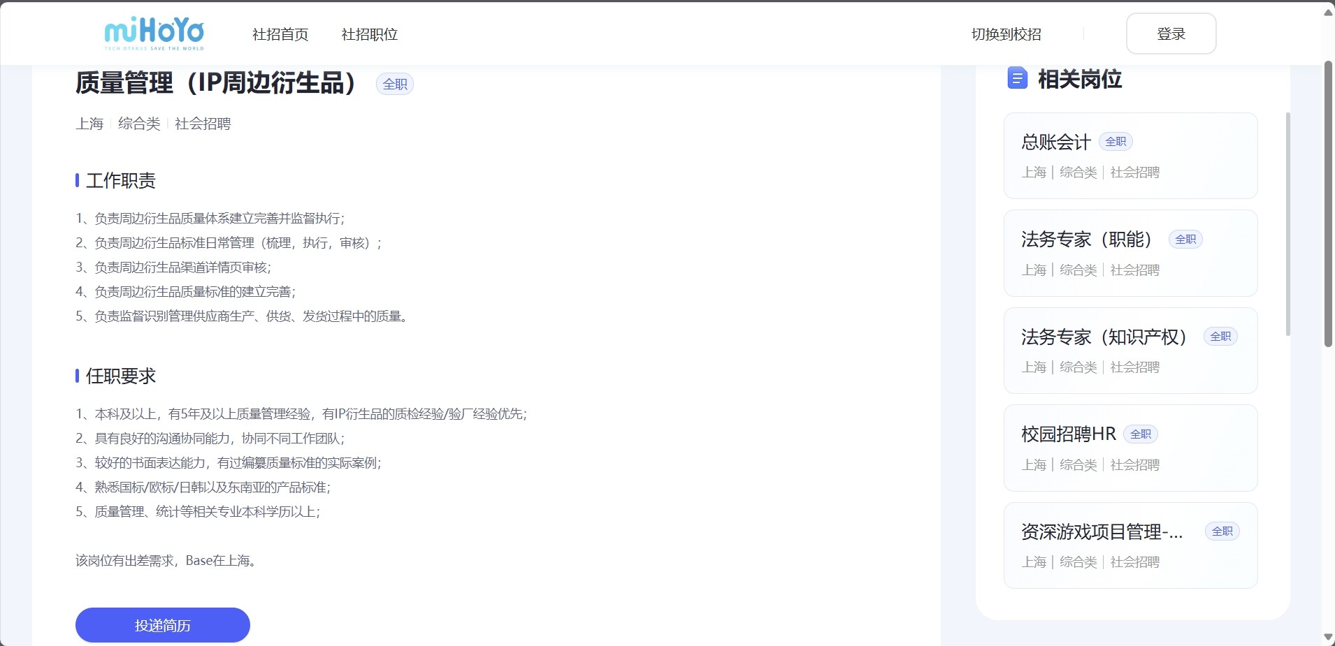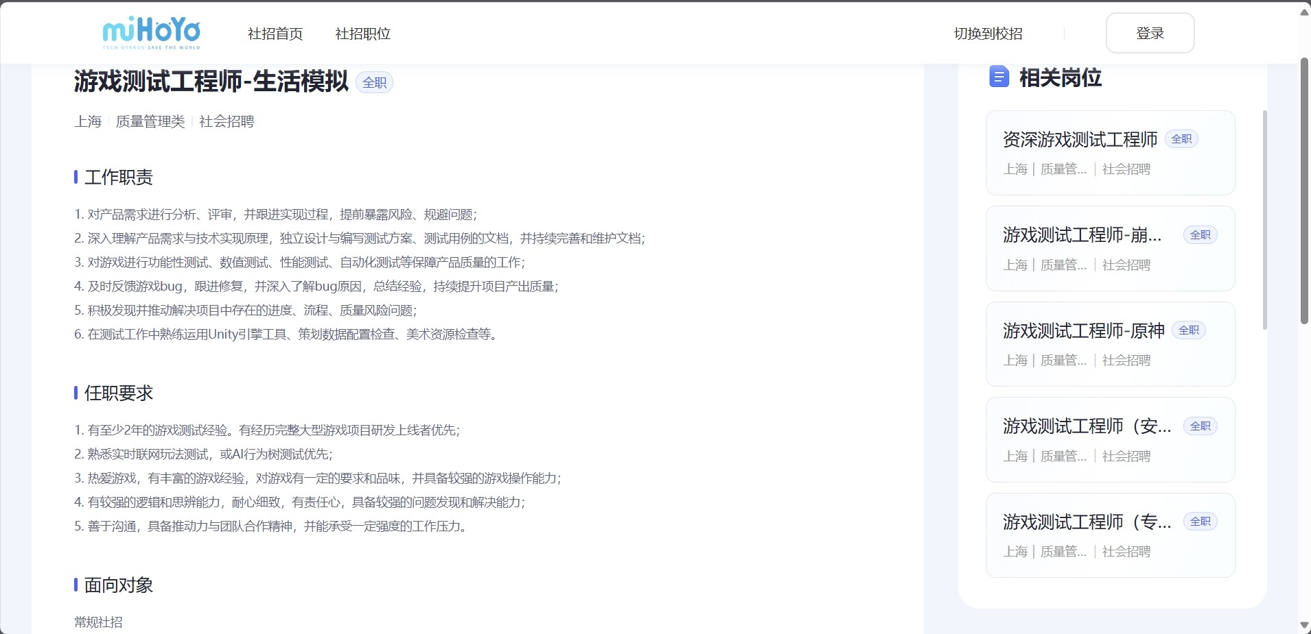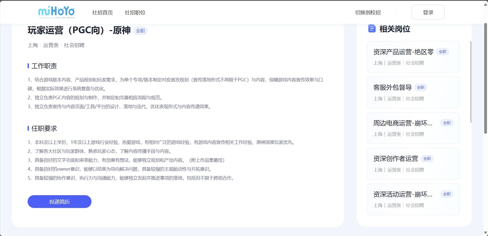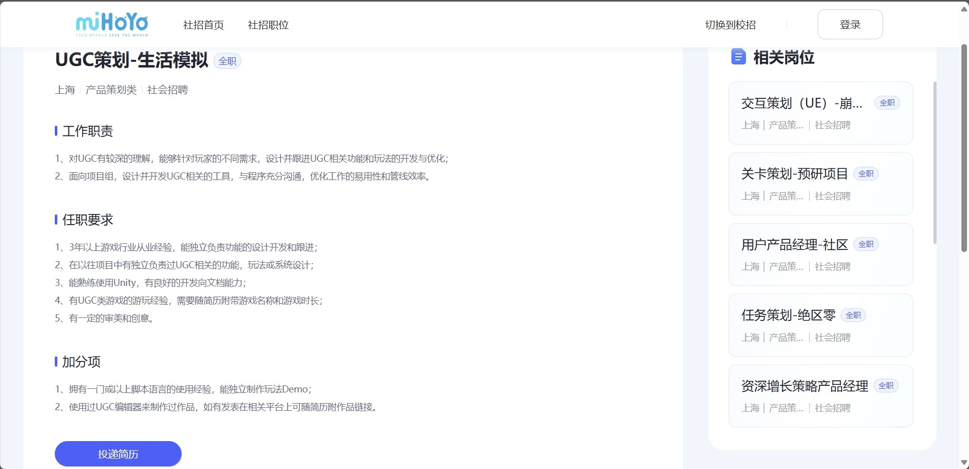 米哈游招聘信息记录(仅记录国内主体招聘),对于hoyoverse和ANOTK的欢迎你们补充