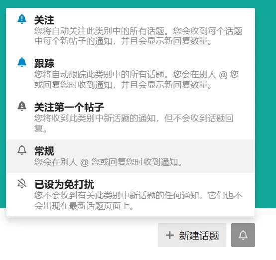 选择具体的讨论板块,然后选择讨论列表右侧的小铃铛