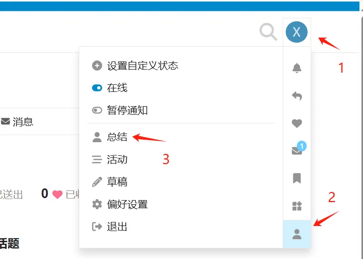 进入方法 :点击右上角自己的头像,然后选择“个人资料”按钮,在其中的菜单中选中“总结”即可