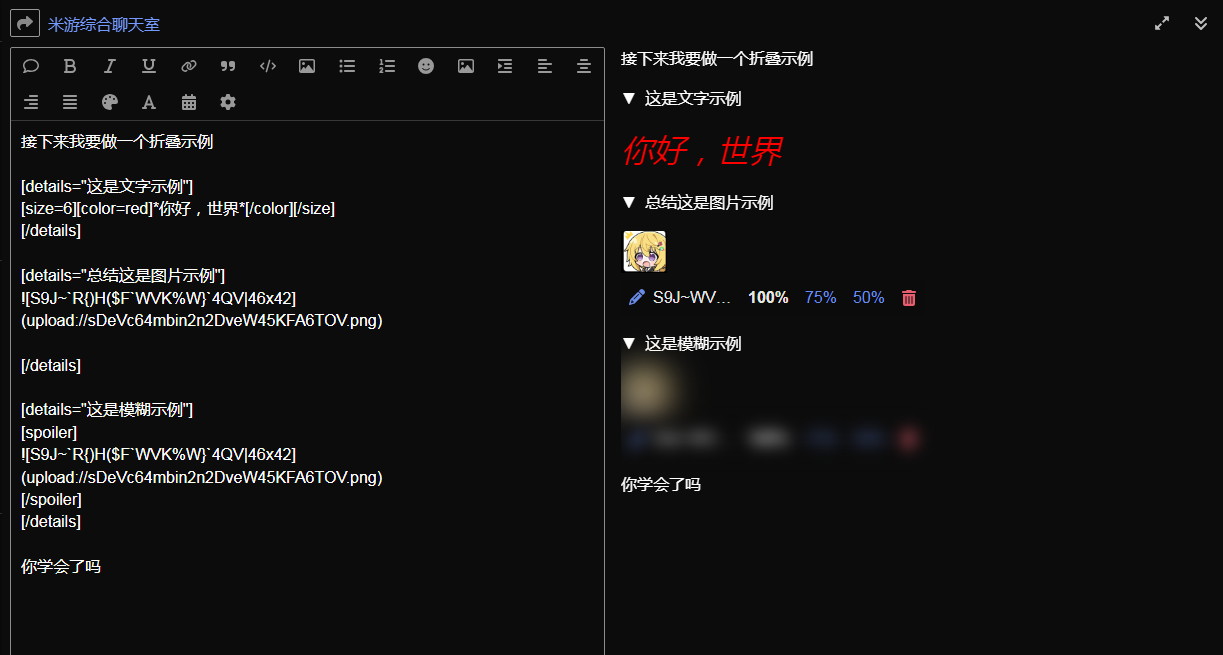 就是你可以把颜色的代码也当成文本,放进字号的代码里,或者把斜体的粗体下划线代码放进去,这样就可以实现既改了颜色又可以改字号
