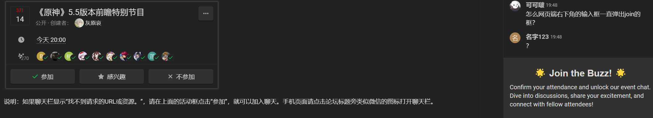 这个问题直到前瞻结束都没能解决,点击参加了,也反复刷新好几次,但右边的 join the buzz 总是会在十几秒后弹出。
