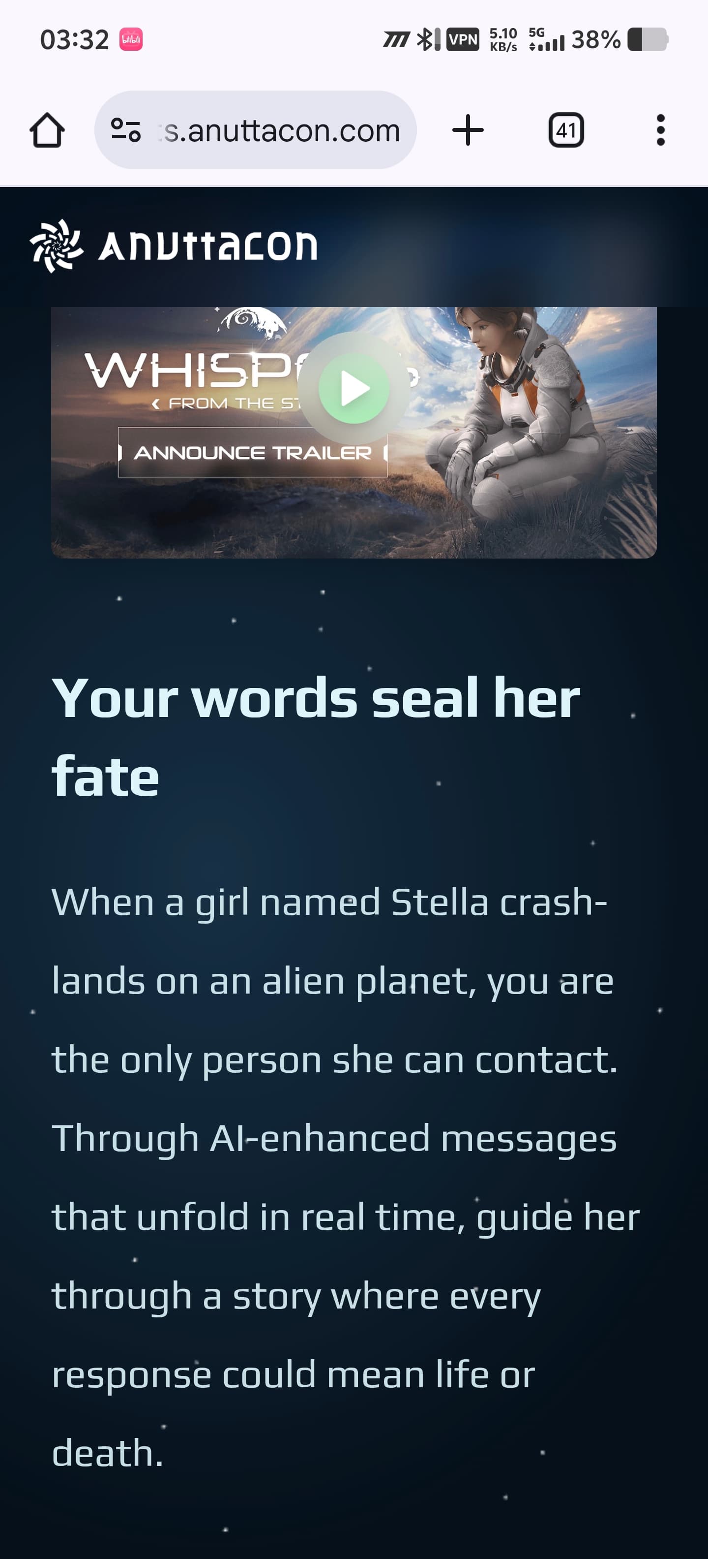 当一个名叫斯特拉的女孩在外星星球上迫降时,你是她唯一可以联系的人。通过人工智能增强的信息,实时展开,引导她通过一个故事,每个反应都可能意味着生或死。