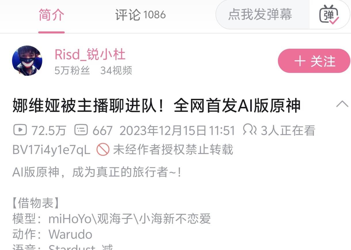 刚群里有人发了这个up 好像被mhy收编了 这个视频下面有人发了他在mhy的照片