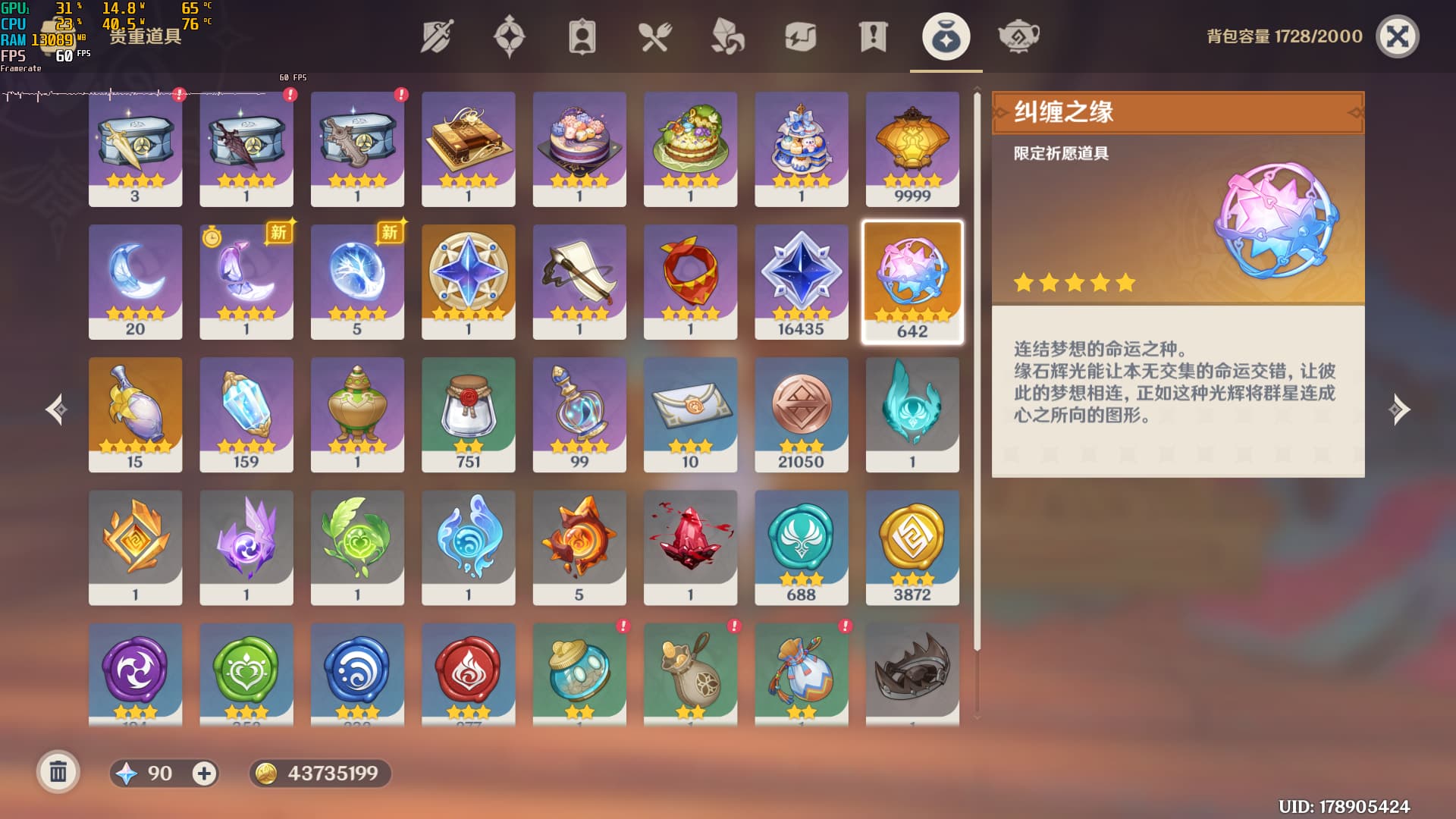 氪金道具62个,晶片15931,普泪11个