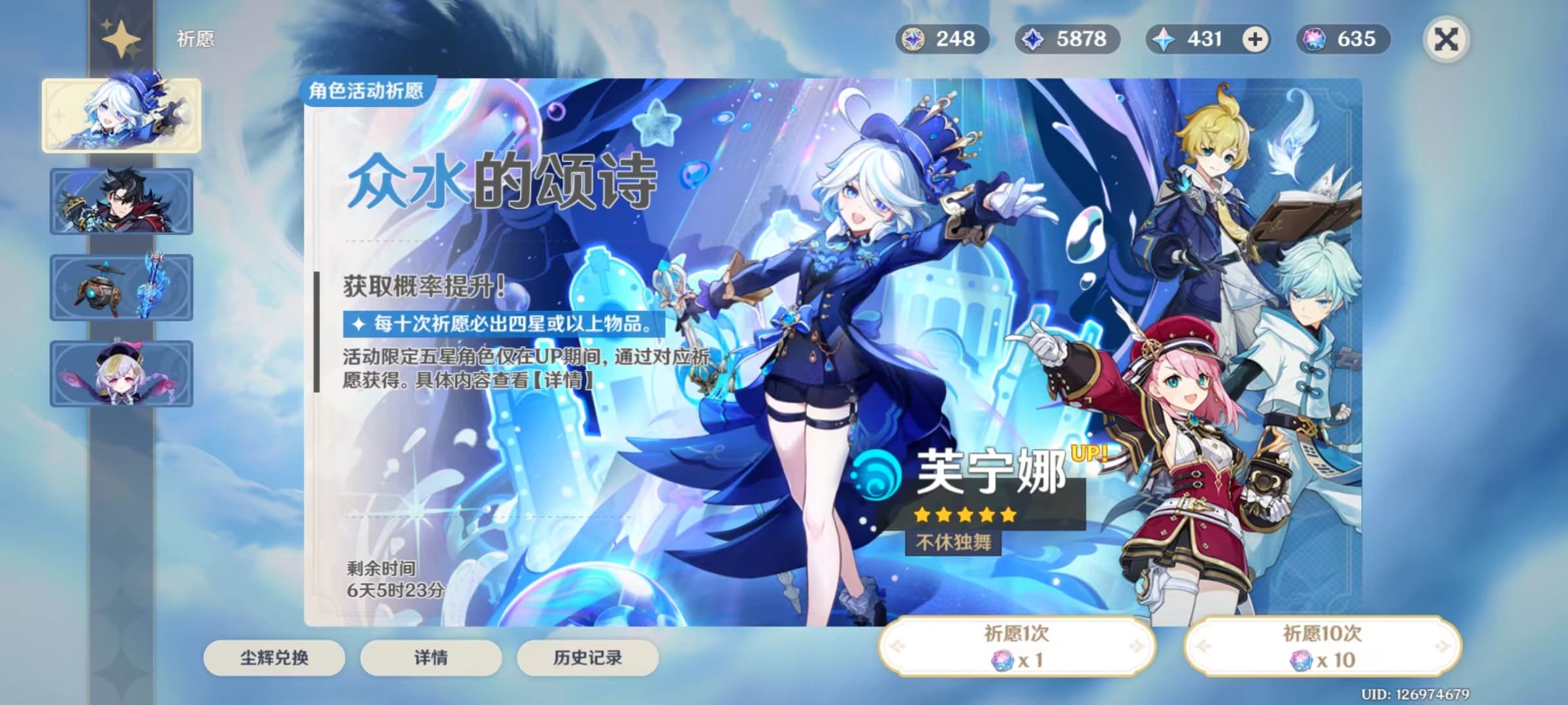 不过卡皮塔诺不进池还是太伤了,阿蕾奇诺之后我全靠卡皮塔诺一口气吊着,期待了三个版本结果5.3大世界常驻了啊啊啊啊,哪怕是进常驻池我都会下去先捞2+1的啊