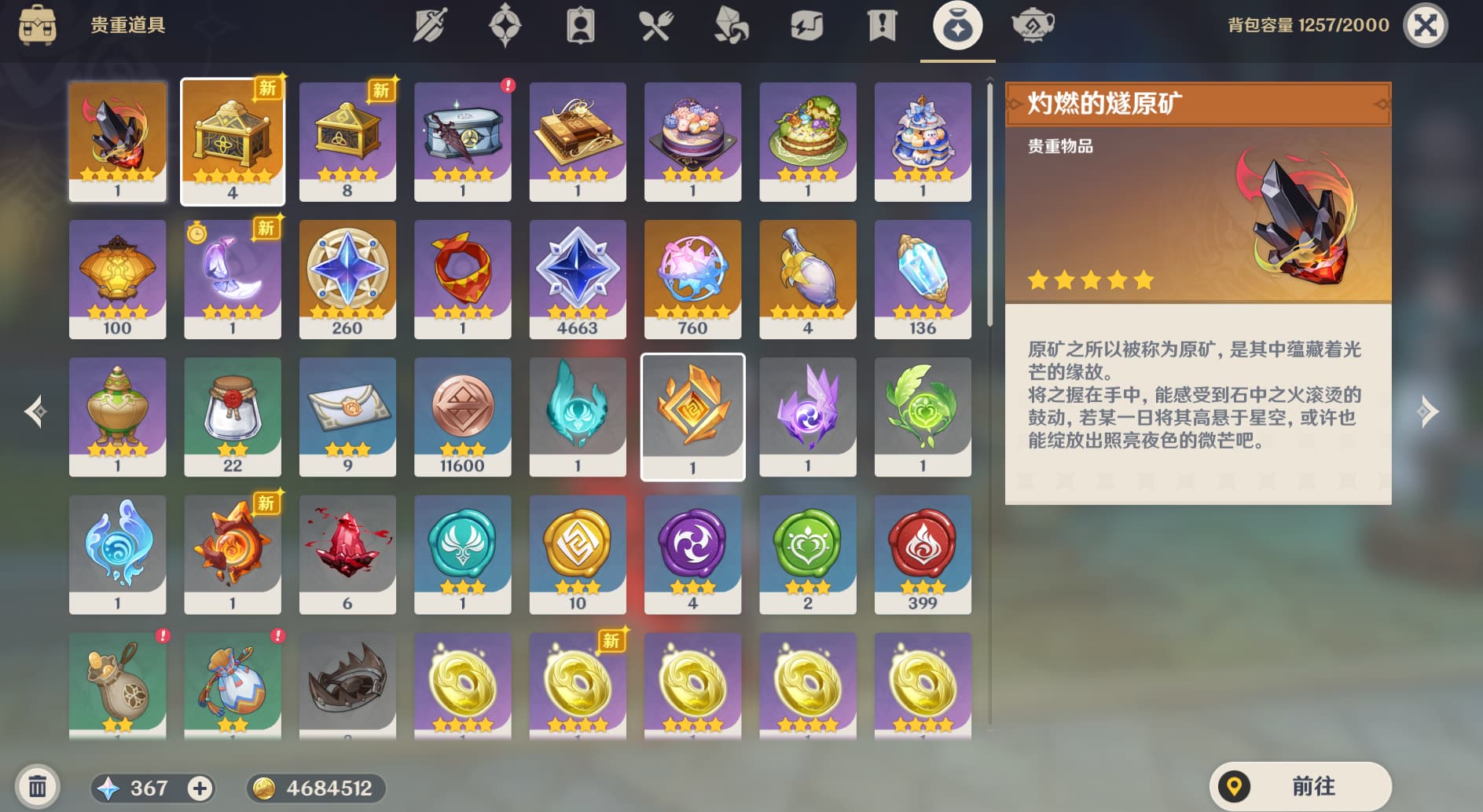 367原石,260星辉,4663星辰,760粉球,0蓝球