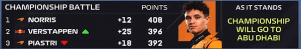 差12分和10分区别不大,潘子阿布扎比夺冠25分,阿诺第三15分的话同分,还是阿诺赢好像,除非潘子再拿一个最快圈。
