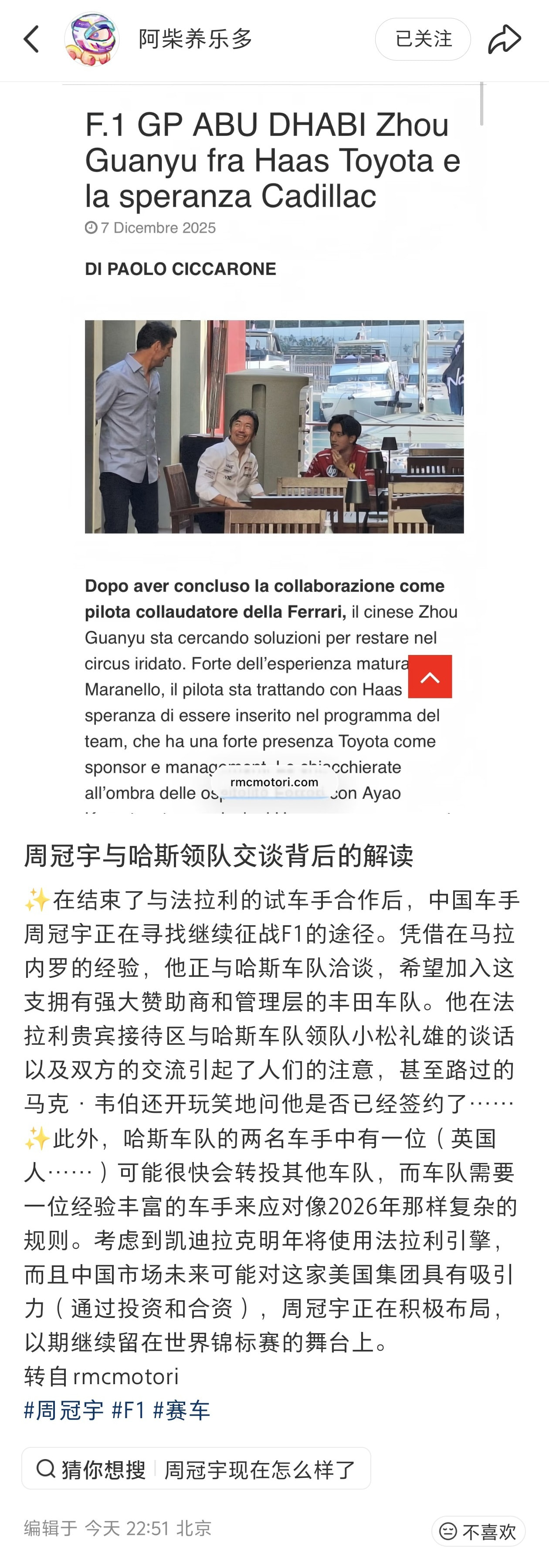 嗯?哈斯的26年席位我记得年初就确定了不变啊,难道说熊男要回法拉利了?