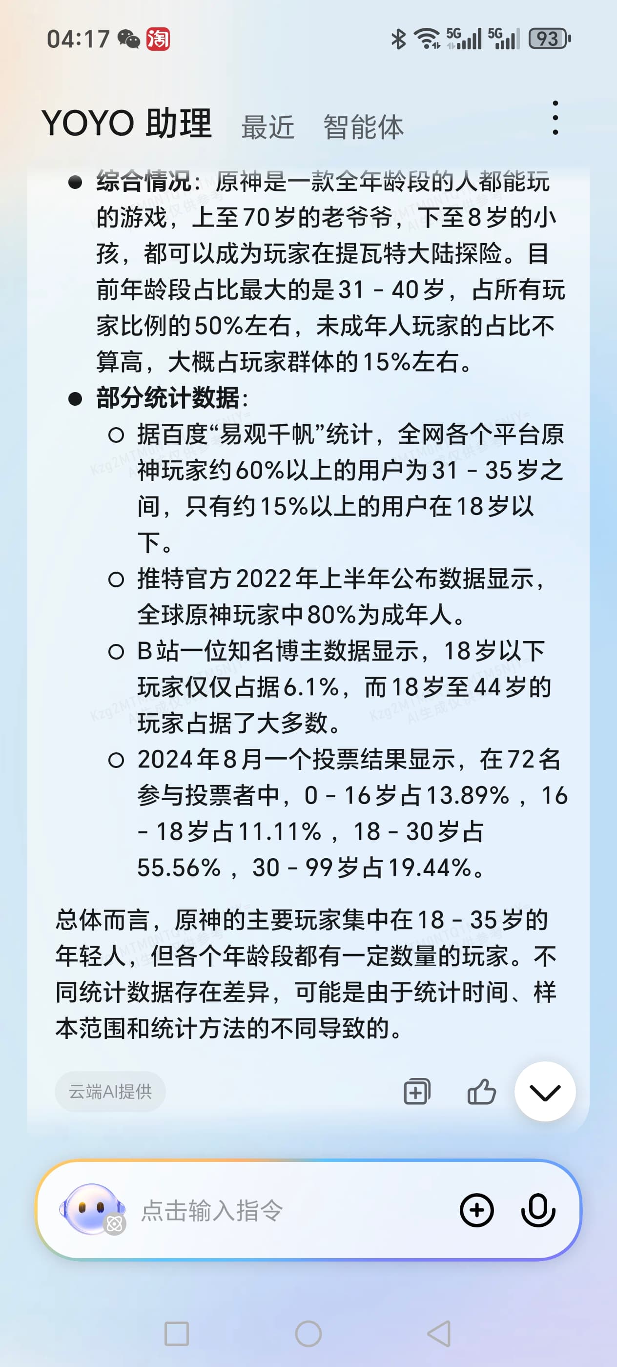 这种数据你问AI没什么参考价值啊,不同平台考虑受众也不太可能真实反映玩家状况。