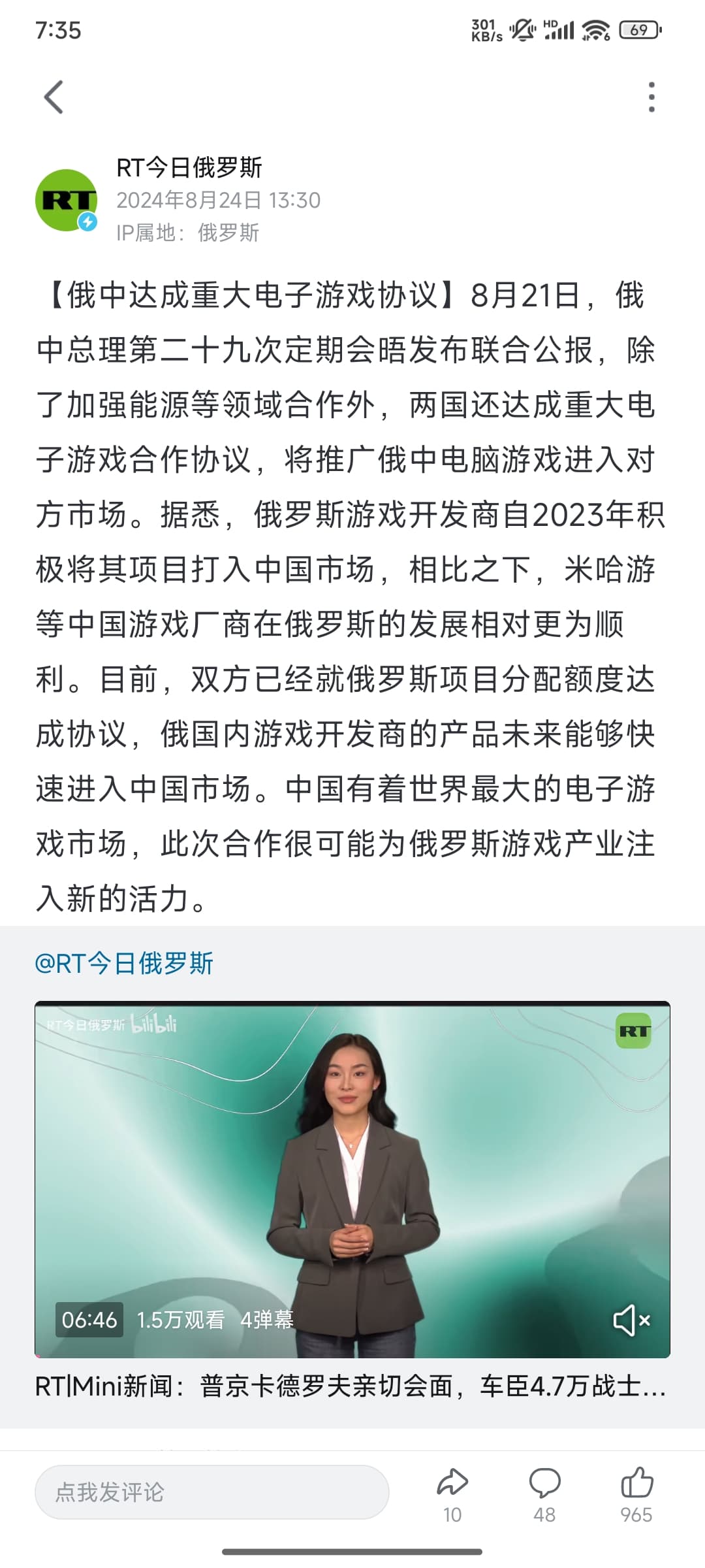 而且rt虽说带有立场,但它内容其实做得还真可以,就他真的懂别国老百姓喜欢看什么,然后针对这个来制作内容,你像现在推出有关原神的内容也是这样,我个人猜测的话它可能也发现原神玩家在国内的舆论境地里处于劣势,所以也需要有个窗口来证明原神的影响力,而且作为一个研究俄国原神玩家的窗口而言我觉得还可以,这是这楼的主旨吧