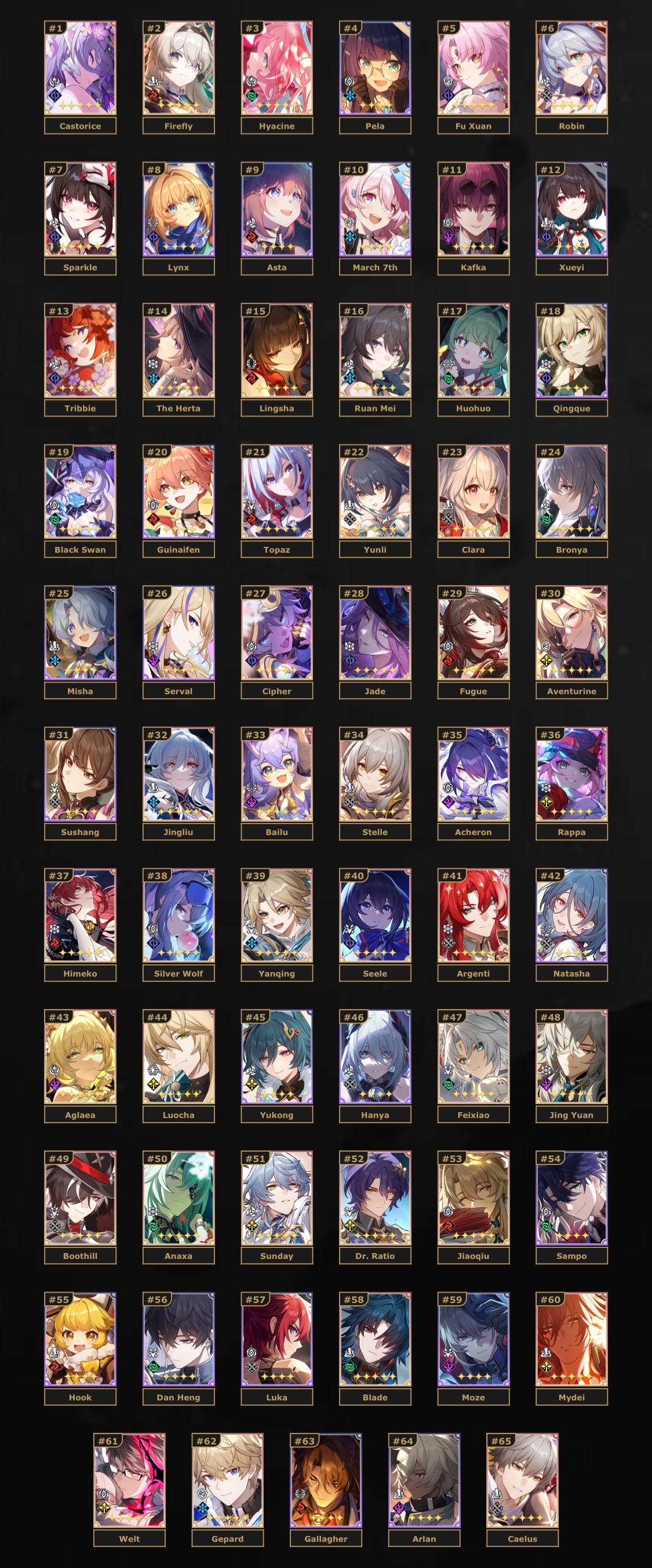 放一下我自己的崩铁rank(超爱鸟日和夏雅!):
