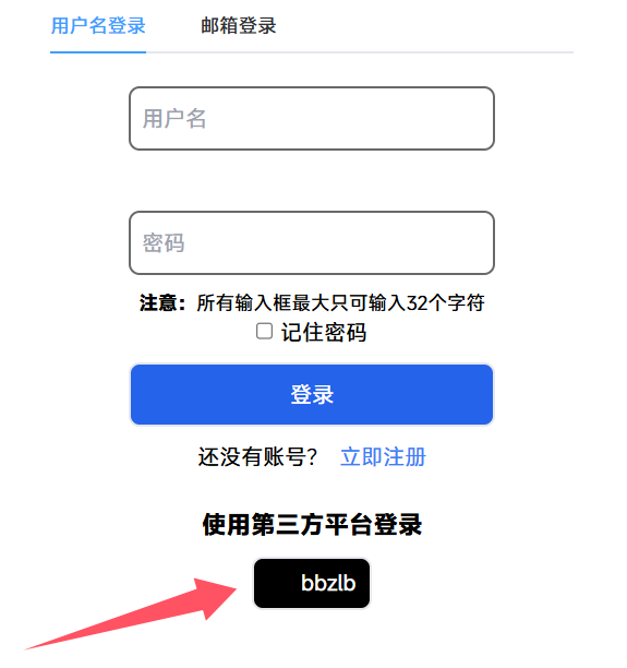 通过Oauth2协议,点击“使用第三方平台登录”下的“bbzlb”,就可以直接使用论坛账号登录直播站。