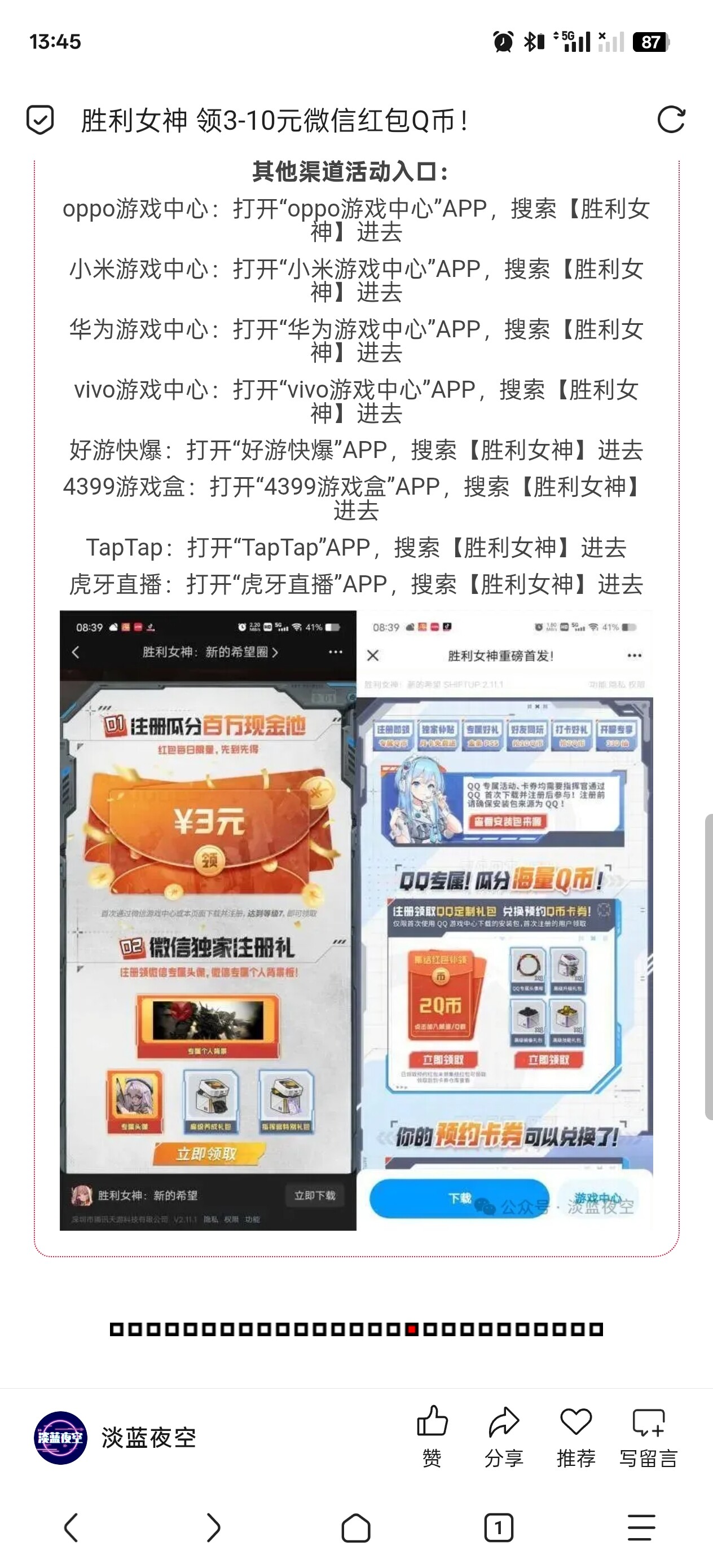 妮姬开服的时候安卓端分了很多渠道服,在不同渠道服分了不同的养成资源。