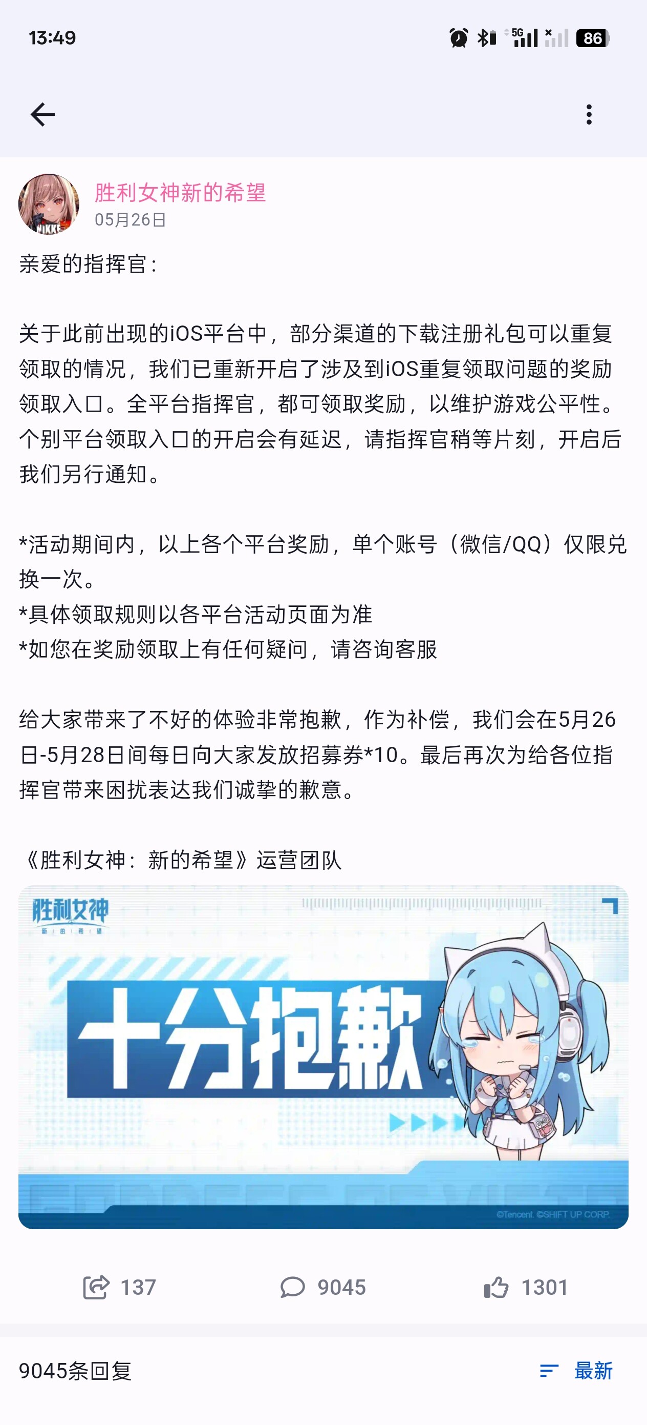 后续藤子虽然就这事发了补偿,但是是补偿给全端玩家的,ios服玩家资源领先的情况并没有改变。