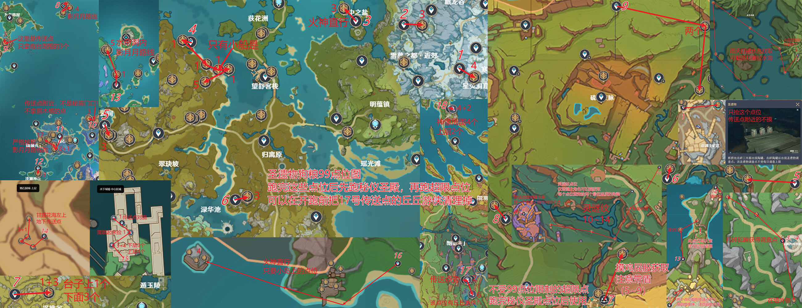 4、本图是依据“你的影月月”的圣遗物狗粮路线进行修改+扩展的,因此十分建议先熟悉一下“影月月路线”(最后有提供链接),尤其是A-11(A图第11个传送点,对应影月月视频的“稻妻3”分P),不熟悉的玩家十分容易出错