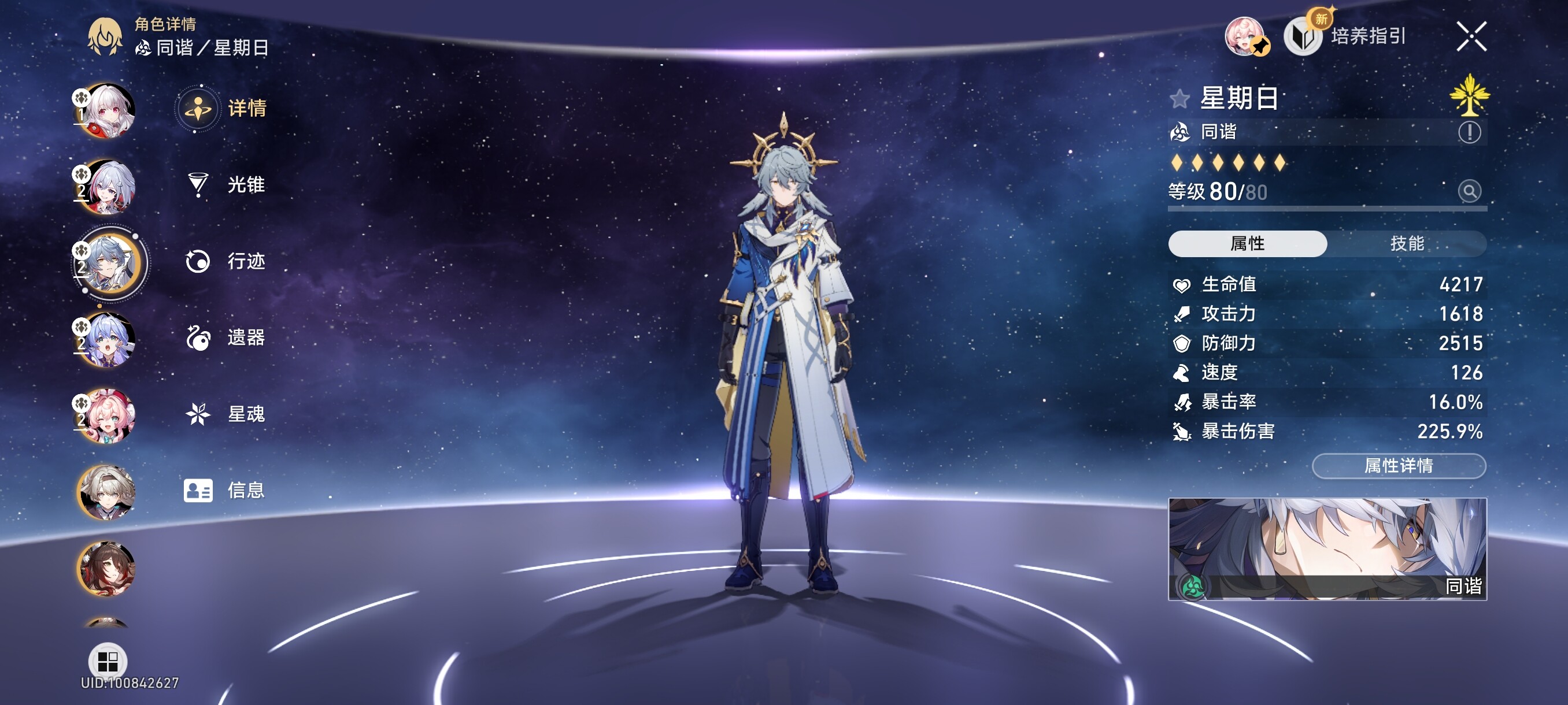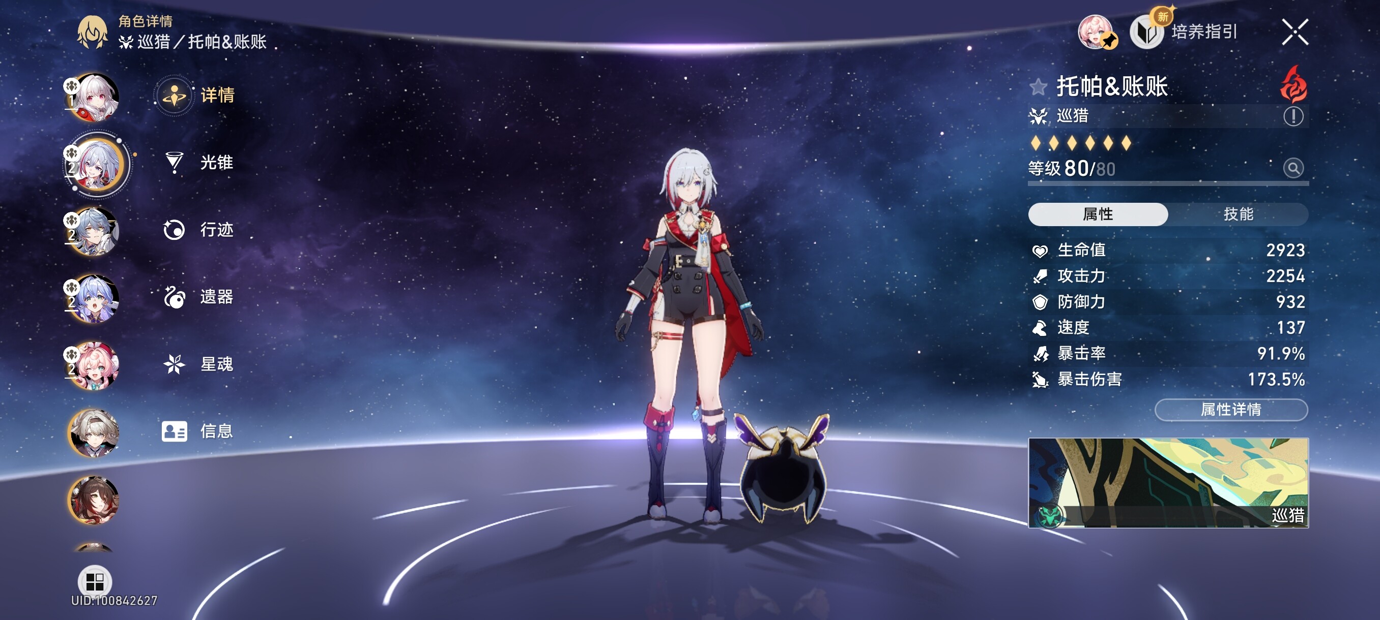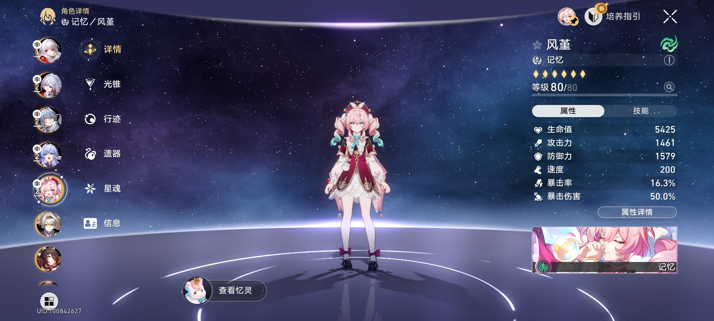 风堇遗器提升了一些速度,生命低了一些,打了3318