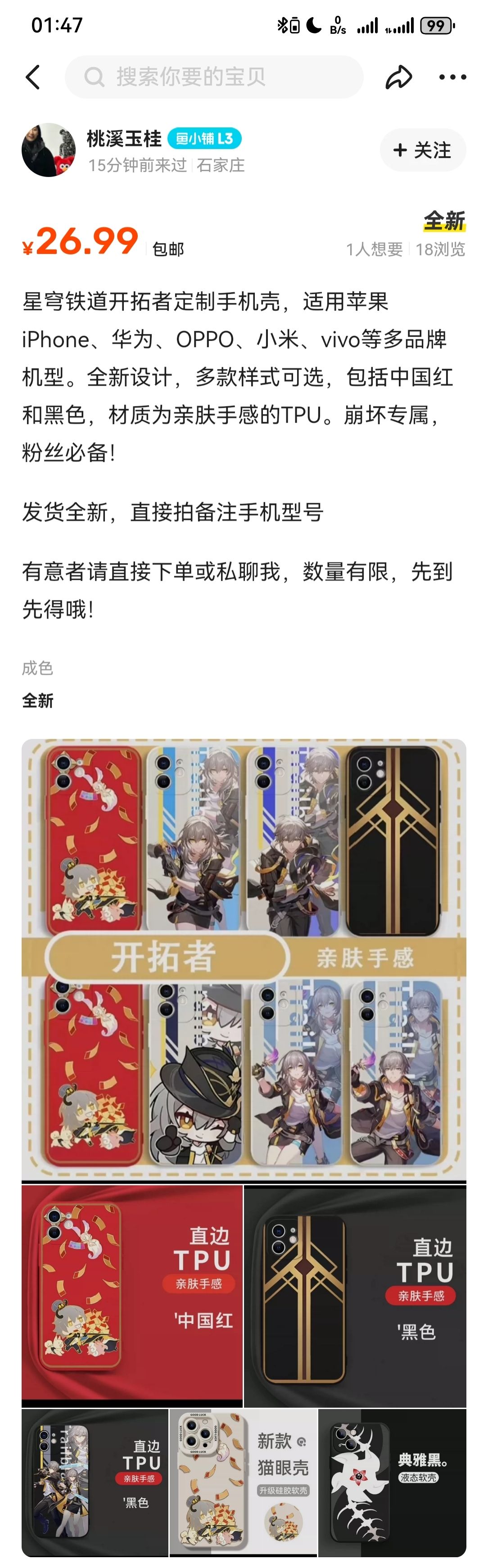 之前问过楼友网上购物平台有没有星铁周年庆的累充手机壳,当时没找到。