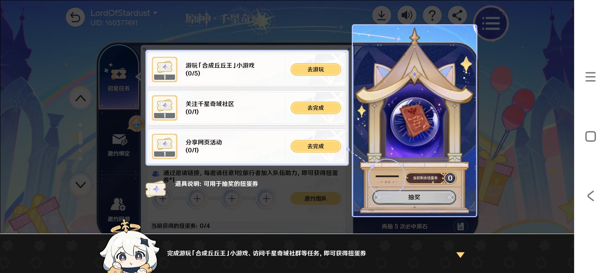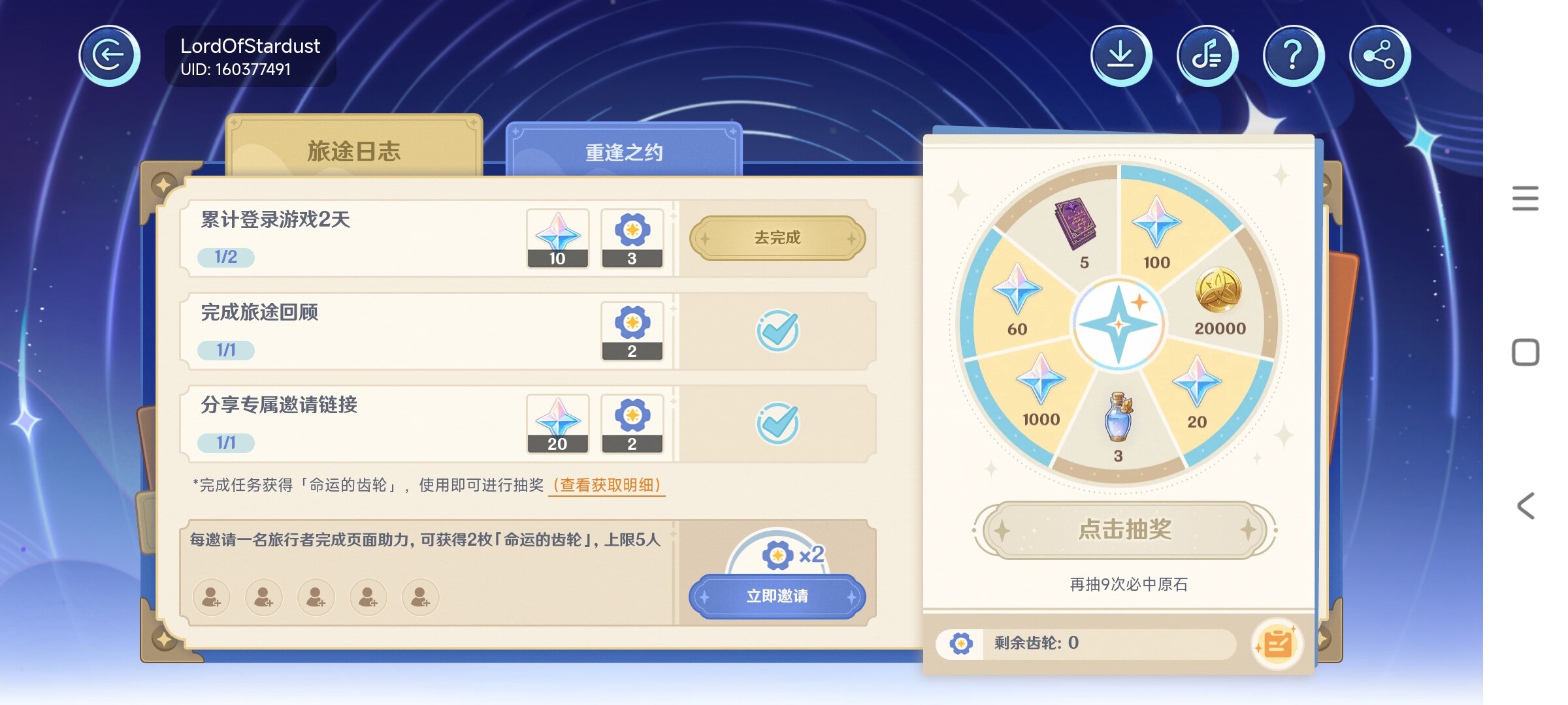 分享回顾(网页提示时复制链接即可)20还是40原石,完成游戏内任务(主要是登录两天)40原石,抽奖保底一次原石奖励(最低20,我拿了60)