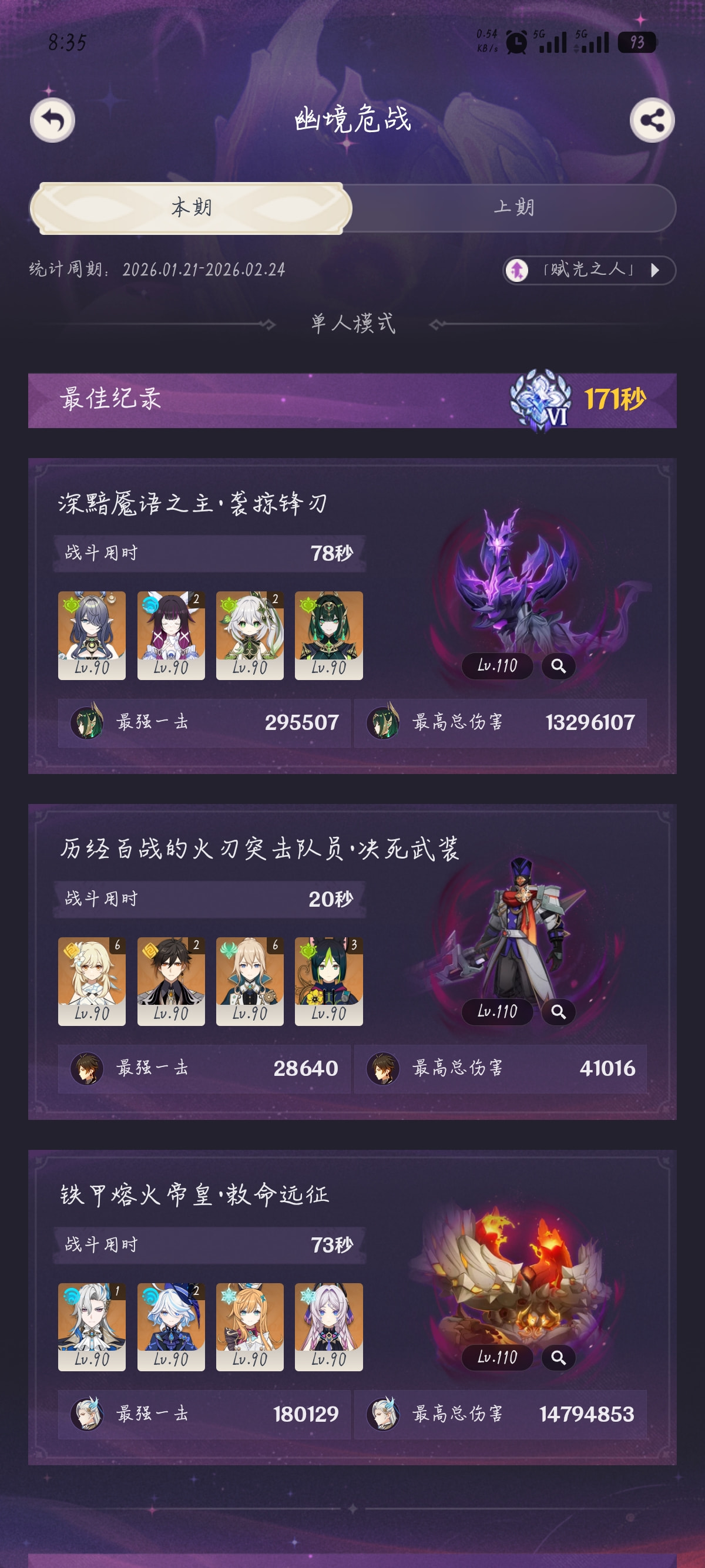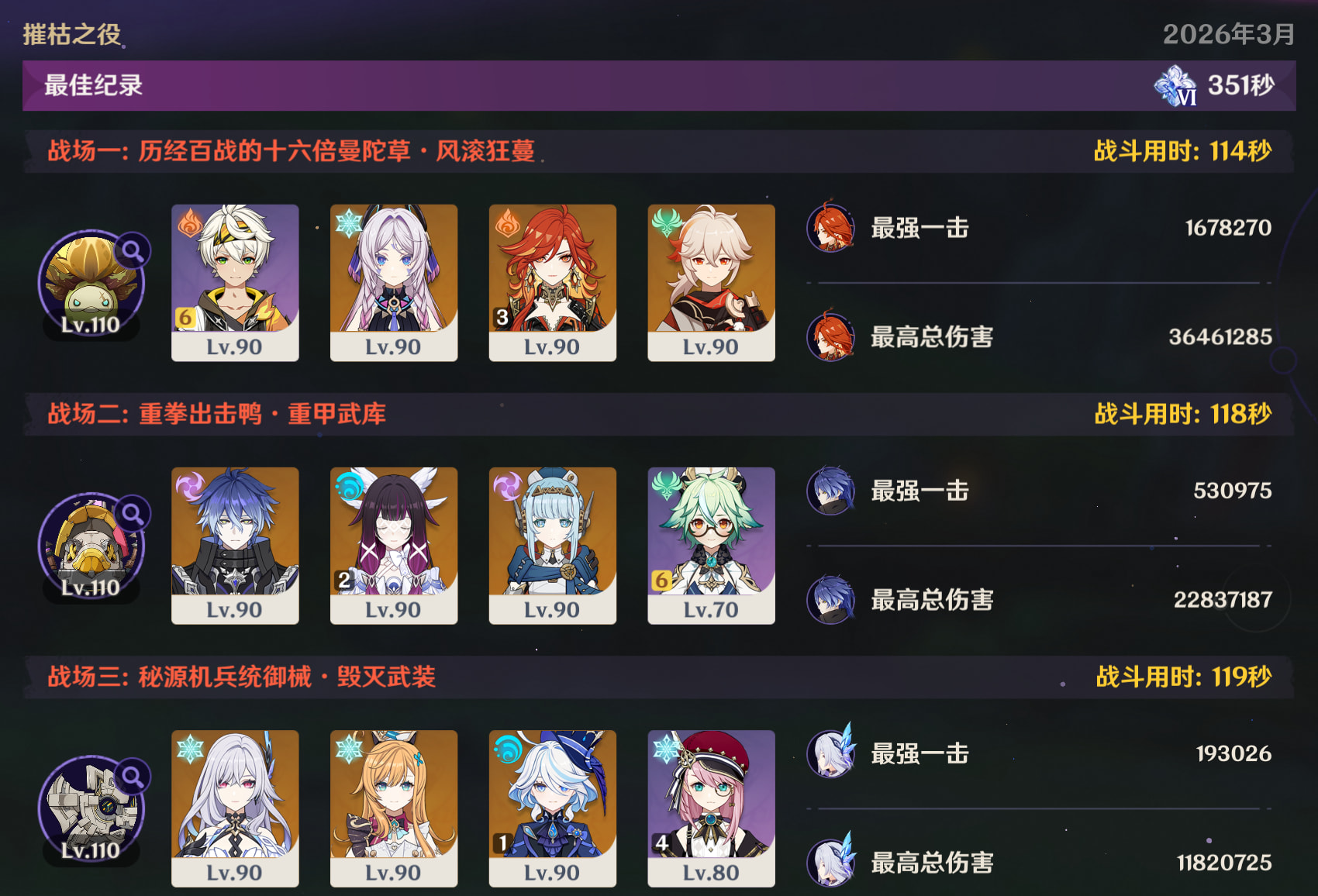 我dps最高的是月绽试了不太行,2火也试了差的有点远,目前最有希望的是少机加希牛,差2秒。少女词条多一点就能过