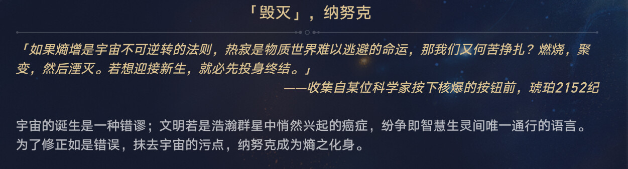 更关键的证据在于他们选定的执行者:从幕后操盘翁法罗斯的来古士到新登场的绝灭大君们,这些与毁灭有关的人物普遍能驾驭多重命途力量——这一形态与均衡派系的【仲裁官】不谋而合。这是偶然吗?还是二者同盟的证明?