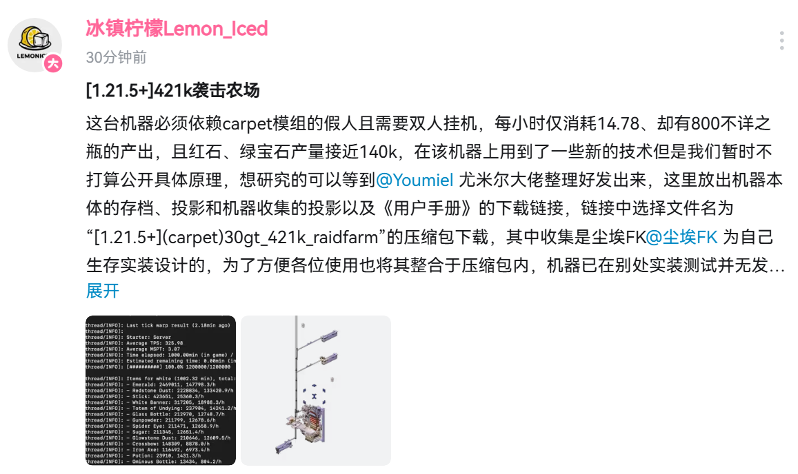 原本先升级末地伪和平是想把熔炉组做在末地的,这下也不需要了,不过爬爬科技树也好。之前看大佬实况学习了一下,其实开荒的时候就可以规划好,把潜影贝农场的一个角放到折跃门的弱加载范围内,这样做好加载器就可以直接当伪和平用了。我现在的贝场没什么规划,要用的话只能用假人,一挂就是20多mspt,开个刷沙机都胆战心惊的。