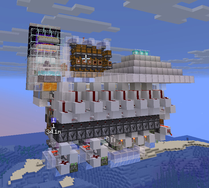 堆了300只凋灵,常态卡顿有20多mspt,用折跃门加载器弱加载就几乎没有卡顿了。原本想说刚建完的新凋零骷髅农场也算是这个的前置科技,不过900头的消耗也真心不算大,以前的单路口农场也完全供得起。