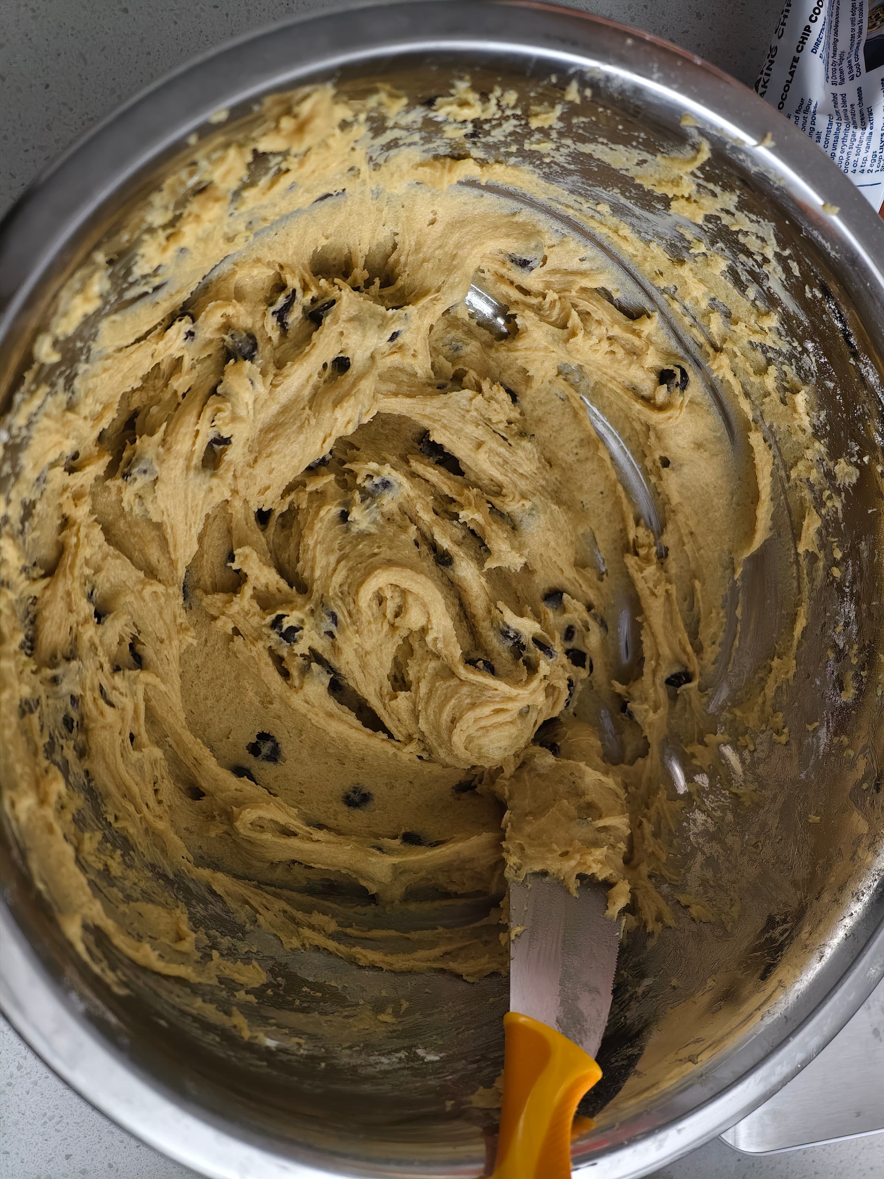 用的耐烤巧克力豆,但是还是有一部分的巧克力融化了,吃起来口感是微微流动的,像巧克力酱,是预期中的味道![]()
