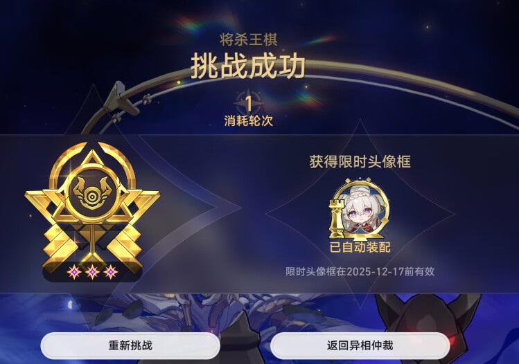 我的妈耶,有了21昔涟以后的01遐蝶队太强大了,虽说没有抽长夜月,只有21缇宝和11风堇,但是打这次的王棋居然比我的61大黑塔队还猛(同样带了21缇宝和11风堇,配的65小黑塔,打了4T),几乎能稳定0T了(现在唯一纠结的就是,我本来想把王棋0T首杀留给萤宝,但偏偏两次王棋BOSS都没法用萤宝,试过了运钞车都撞不过去,又不想让遐蝶她们错失打0T王棋的机会,唉) ![]()