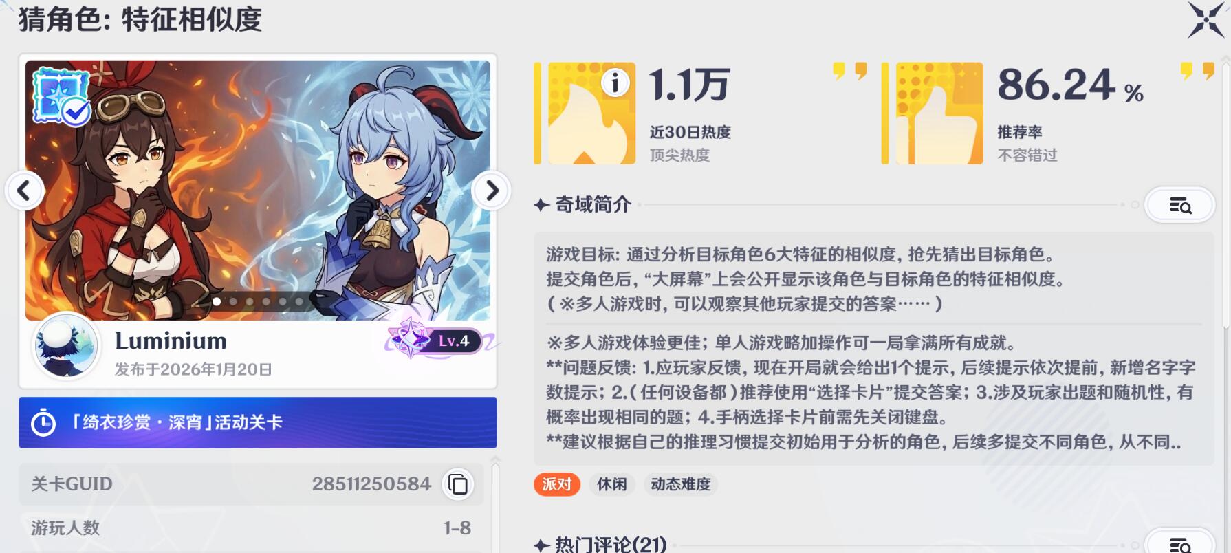 个人感觉多人体验较好的一个猜角色游戏,每个人都能出题,还能根据他人的答案反猜