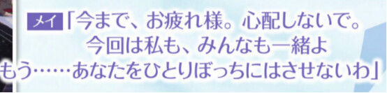 梅:「一直以来,辛苦你了。别担心。这一次,我会陪着你。大家都会陪着你。我们再也不会留你孤独一人了。」