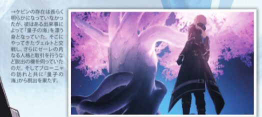 →凯文的存在长期不为人知,但他在某件事后,成为了在「量子之海」中漂泊之人。他在量子之海中与前来的瓦尔特交战,并与希儿的另一个人格进行交易,伺机寻找脱逃的机会。随着布洛妮娅的到来,他也终于从「量子之海」中脱身。