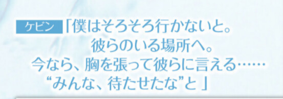 凯文:「我该走了。去他们在的地方。现在,我终于可以骄傲地对他们说……“大家,久等了”」