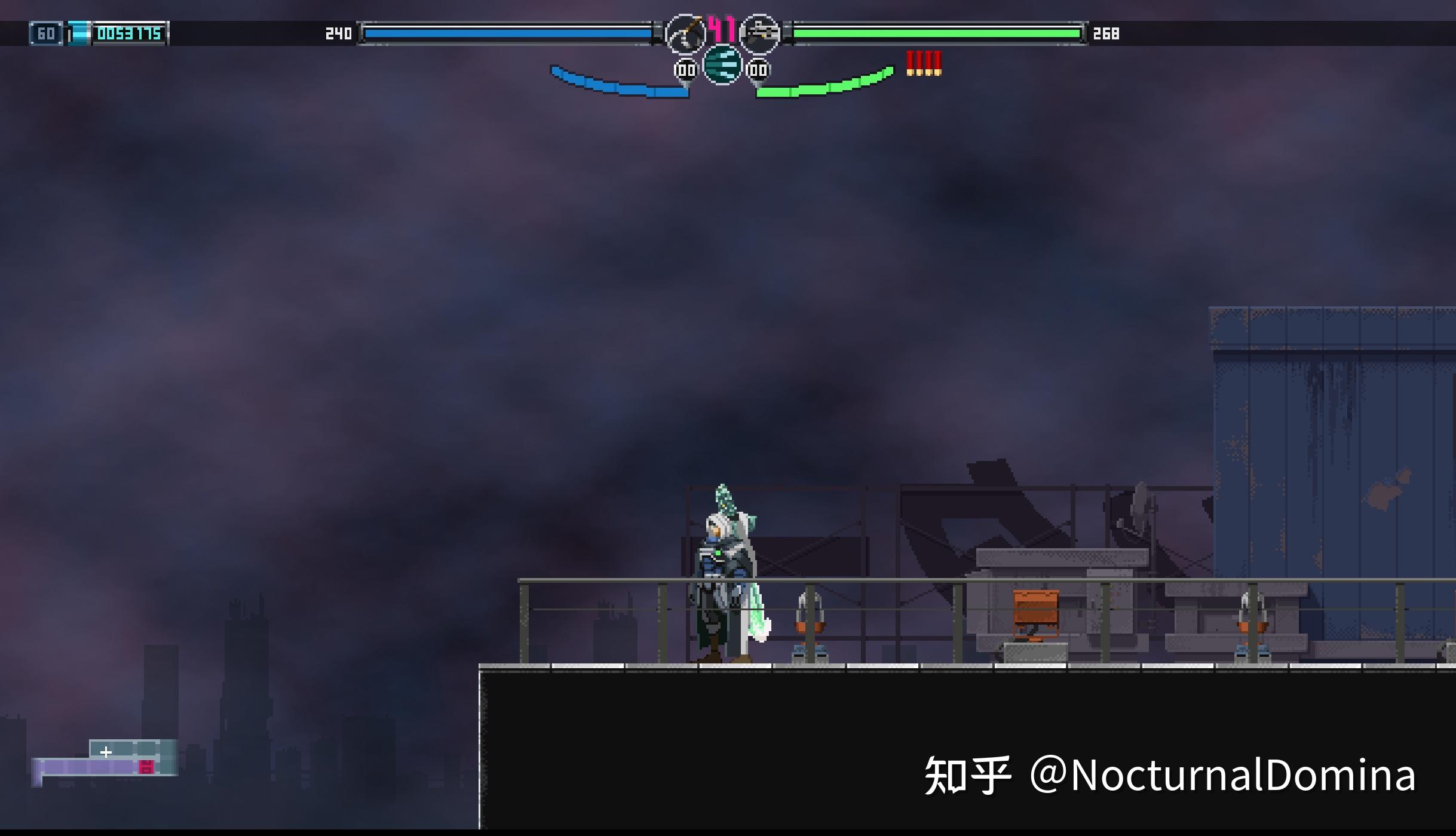 操作手感本身就很差,学恶魔城经典的搞一套打一拳傻一秒的动作模组,玩家一打架就在天上取消后摇,地上根本没法进攻。开始出现平台跳跃的时候指令做得一塌糊涂的问题也开始了,三段跳九成跳不出最大高度,跳跃和冲刺互相吞指令,绳子抓取判定迷惑至极,整个游戏跑图的折磨完全来自输入端。就你这还在硬币里做一命精准高难跑酷挑战啊,洗洗睡吧。