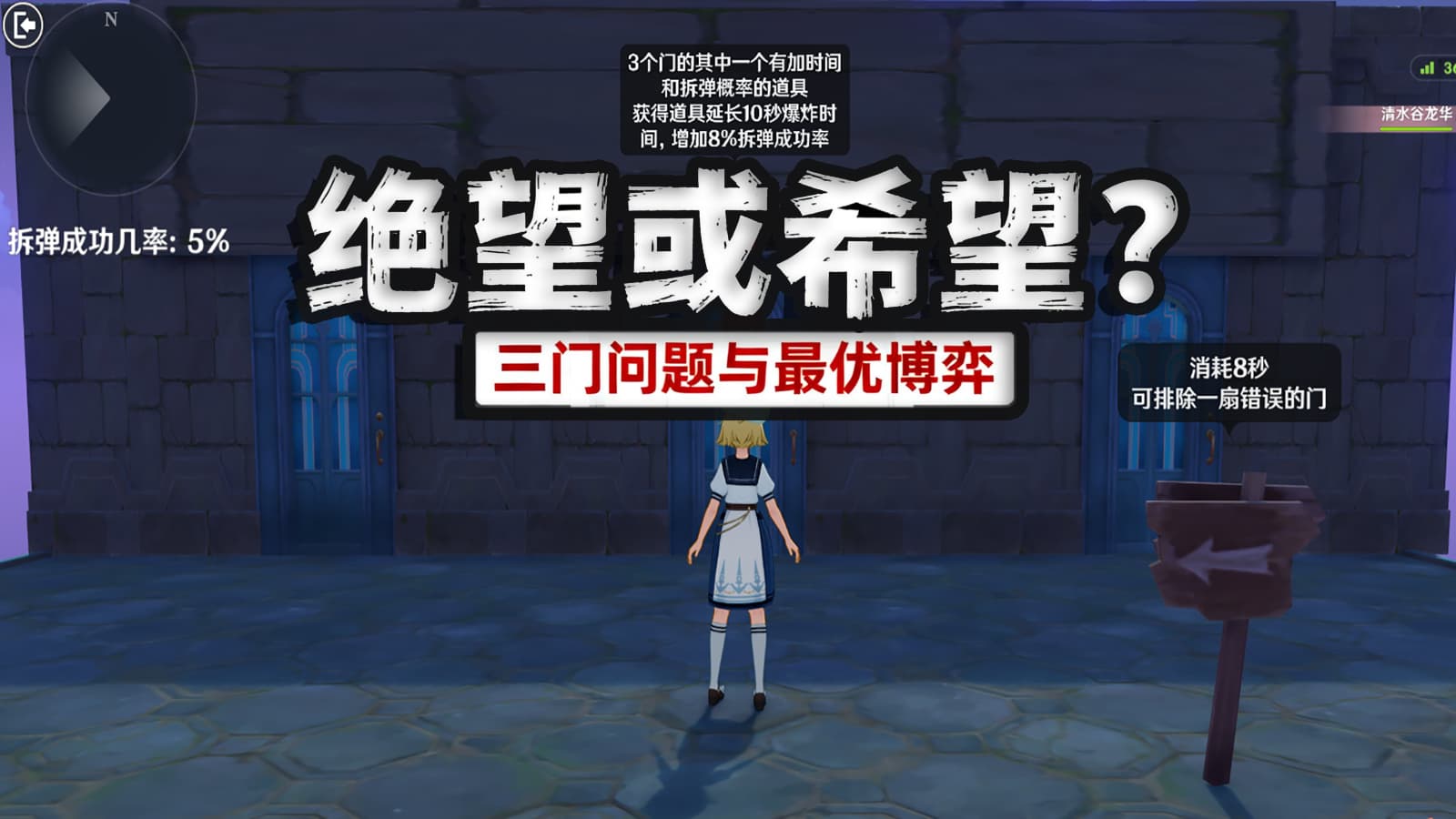 只是在三门问题的基础上增加了一点惩罚机制,如果每关都能无偿排除一个门,就有点没博弈的乐趣了。