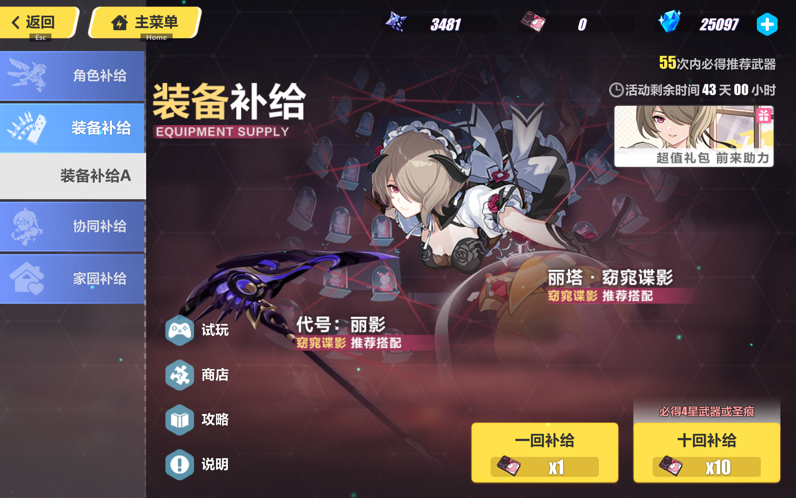 丽塔爱我,20抽角色,武器之前垫了30抽52出的,还有2W氵等下版本了