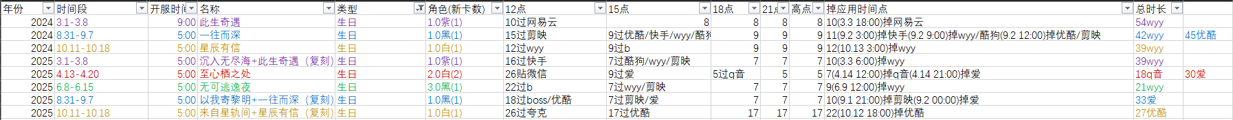 其实之前有考虑过统计氪金捆绑的情况,但是深空的时间条比较混乱,很难实现 ![]()