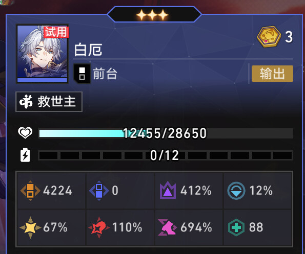 核心思路就是救世主羁绊吃3巡海游侠然后用高速度增幅和伤害增幅配合白厄本身的数值一人镇压全场,只要开巡海游侠的羁绊,然后用提宝花火刻律三拐一白厄