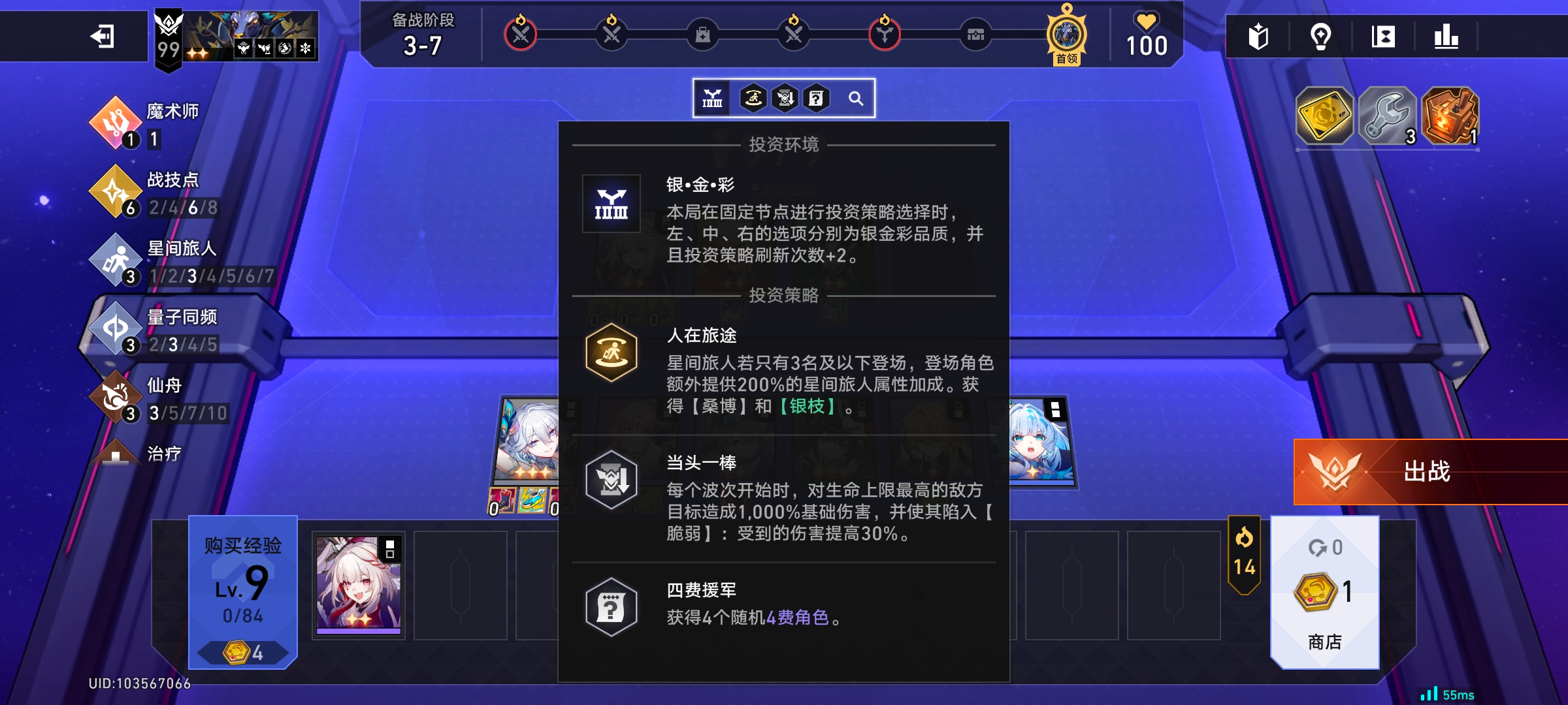 四费开局发了个海瑟音,7级白嫖昔涟,4昼4dot一路无压力连胜到三位面,然后改4昼2dot3群攻,连跪到boss都见不到