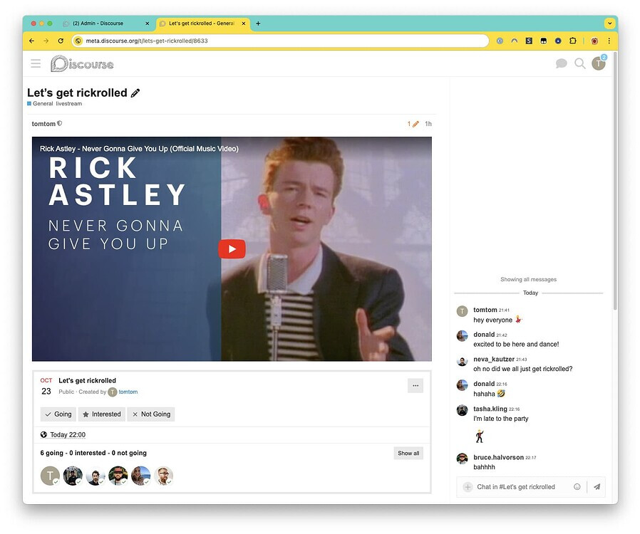 我看 Discourse 是有自带 chat 的,功能还挺全的,可以在前瞻或看其他直播的时候用,也可以用于平时摸鱼聊天,然后也能减少一些水贴和其他刷屏等等