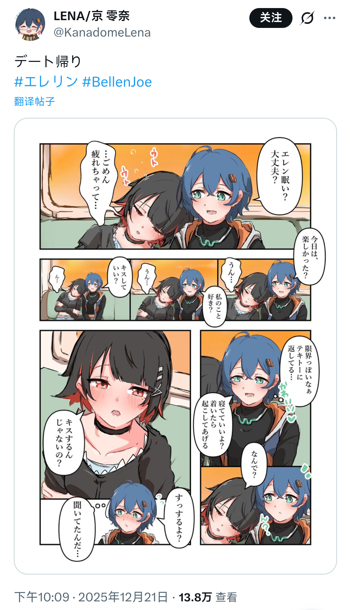 铃:艾莲,睡着了?没事吧?