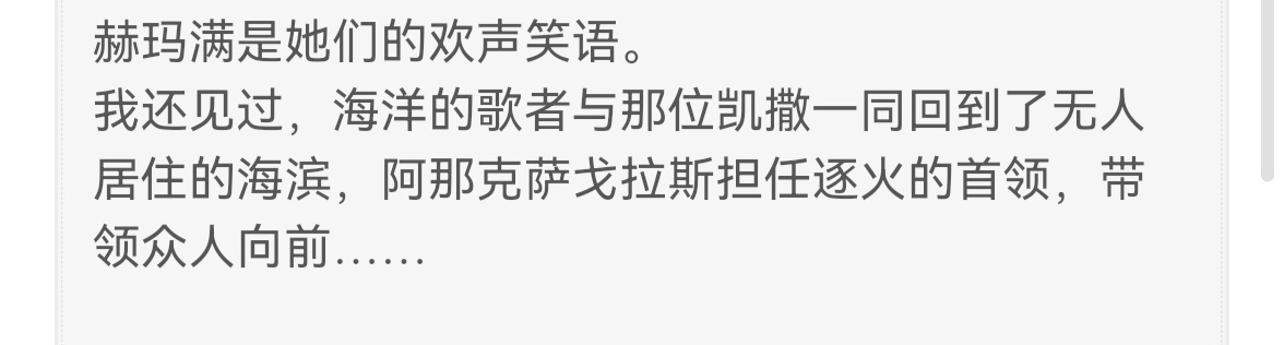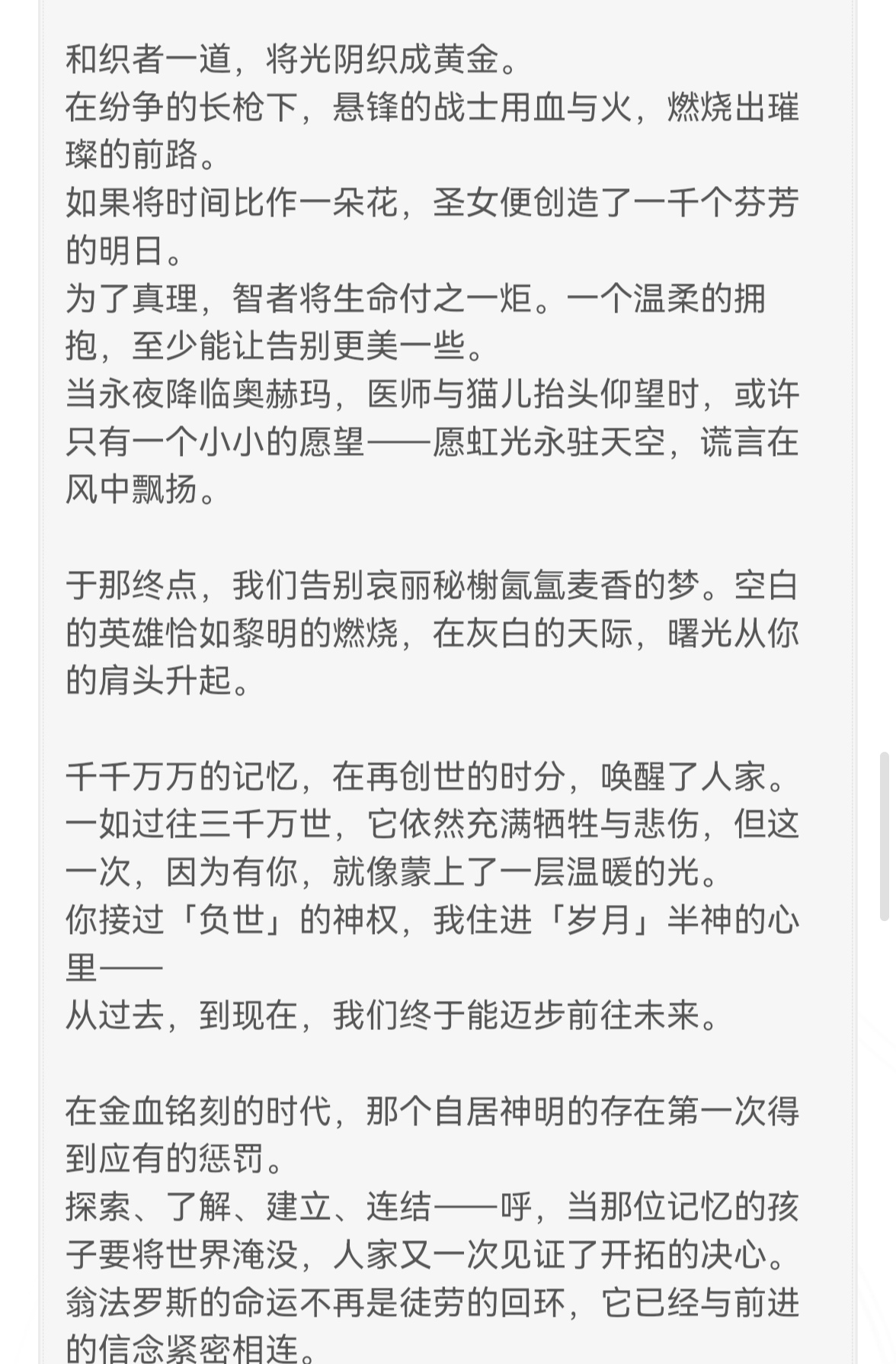 所以我也认为一页永恒是属于翁法洛斯的假期,假期结束新的事情又等待着黄金裔去解决 了![]()