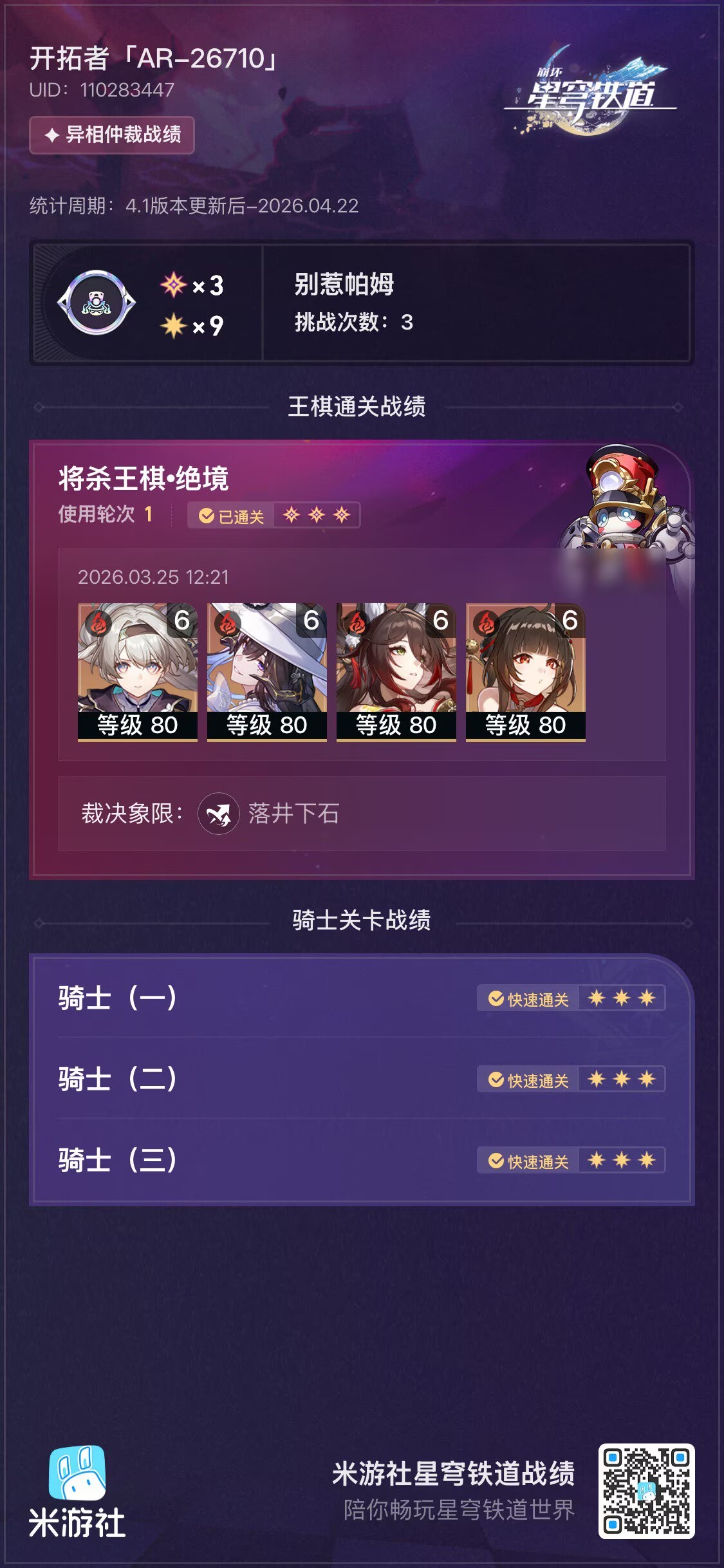 坏,怎么我风堇换上专光后打异象还差了一点(当然都是过的,只是少了一点行动值)![]()