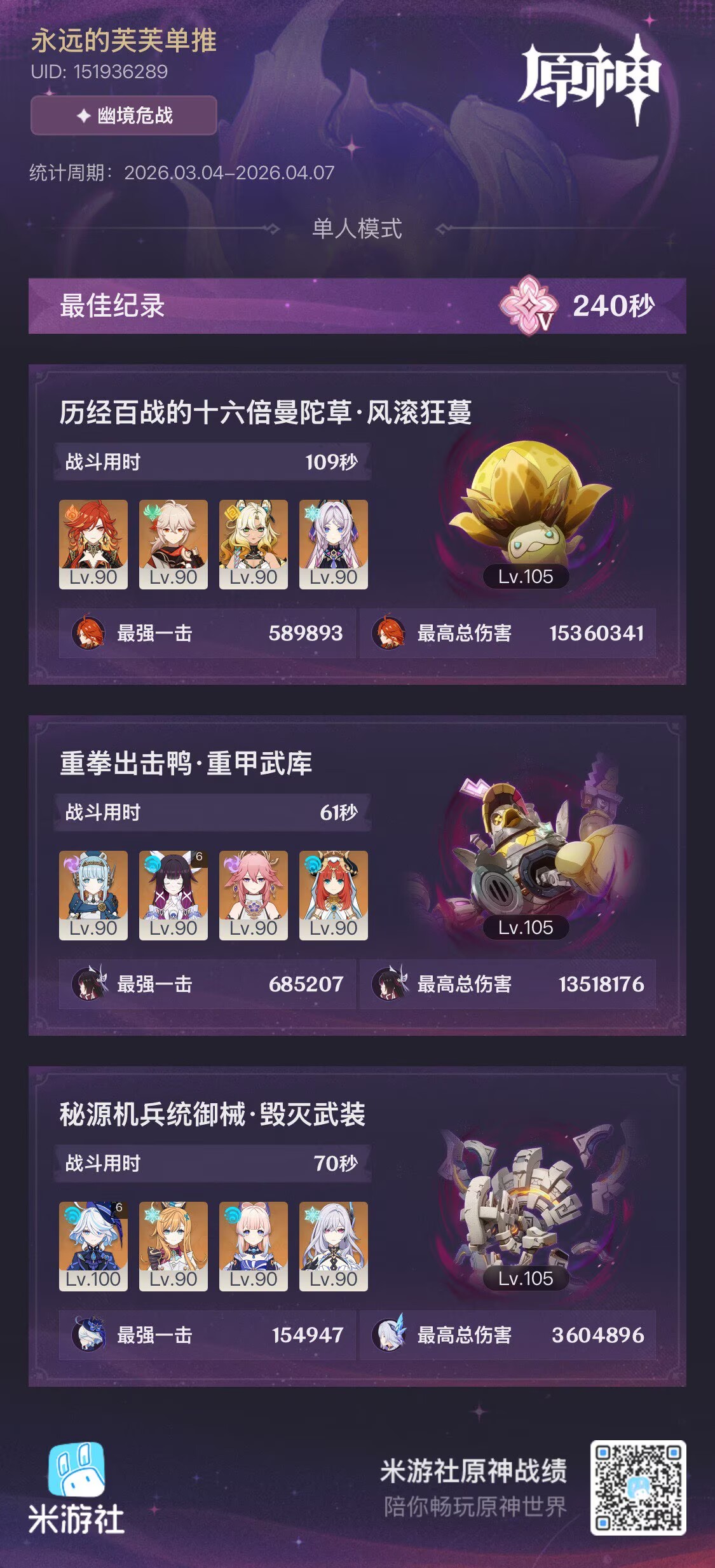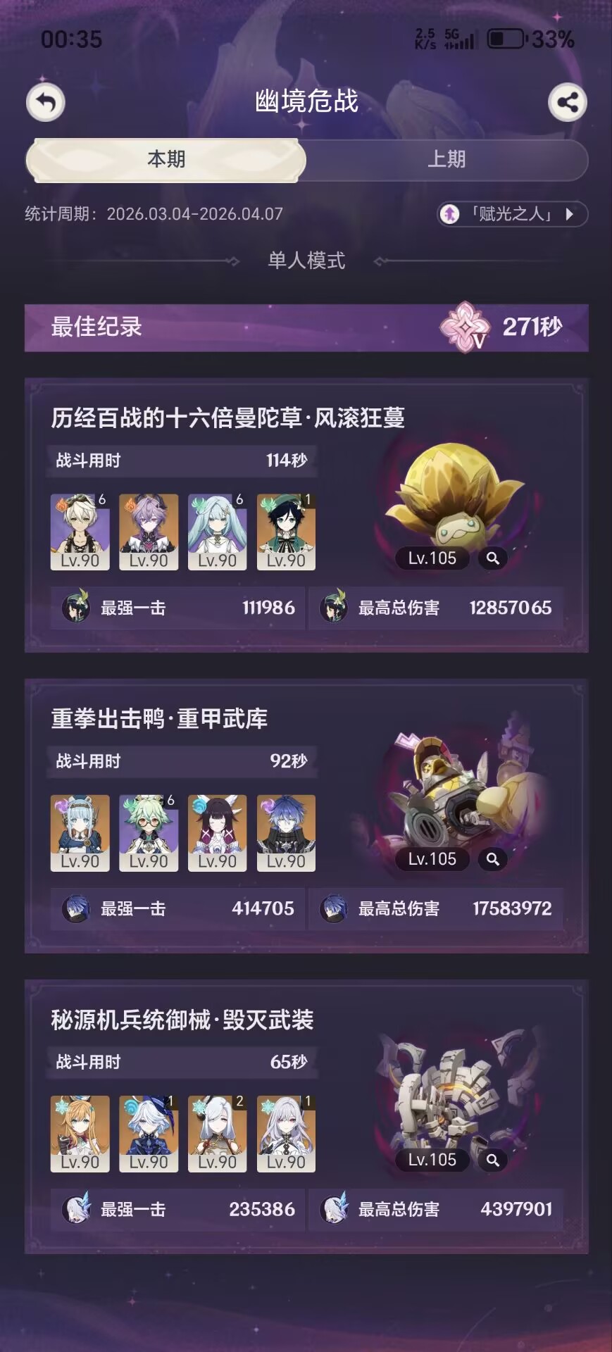 混沌回忆/虚构叙事/末日幻影就纯玩了,能带1.0角色和4星角色打满就行。