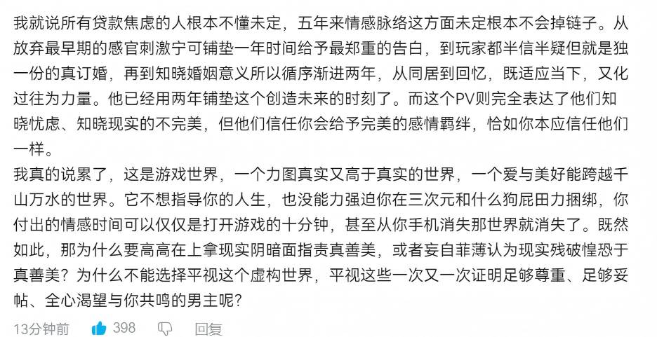 啊啊啊啊,真的好感动,未定真的在踏踏实实的走自己的路啊,从这一路来感情脉络清晰可见,不亏是你,米哈游。谢谢你愿意做乙游,未定官方也是,不管搅屎棍,一直专心走自己路