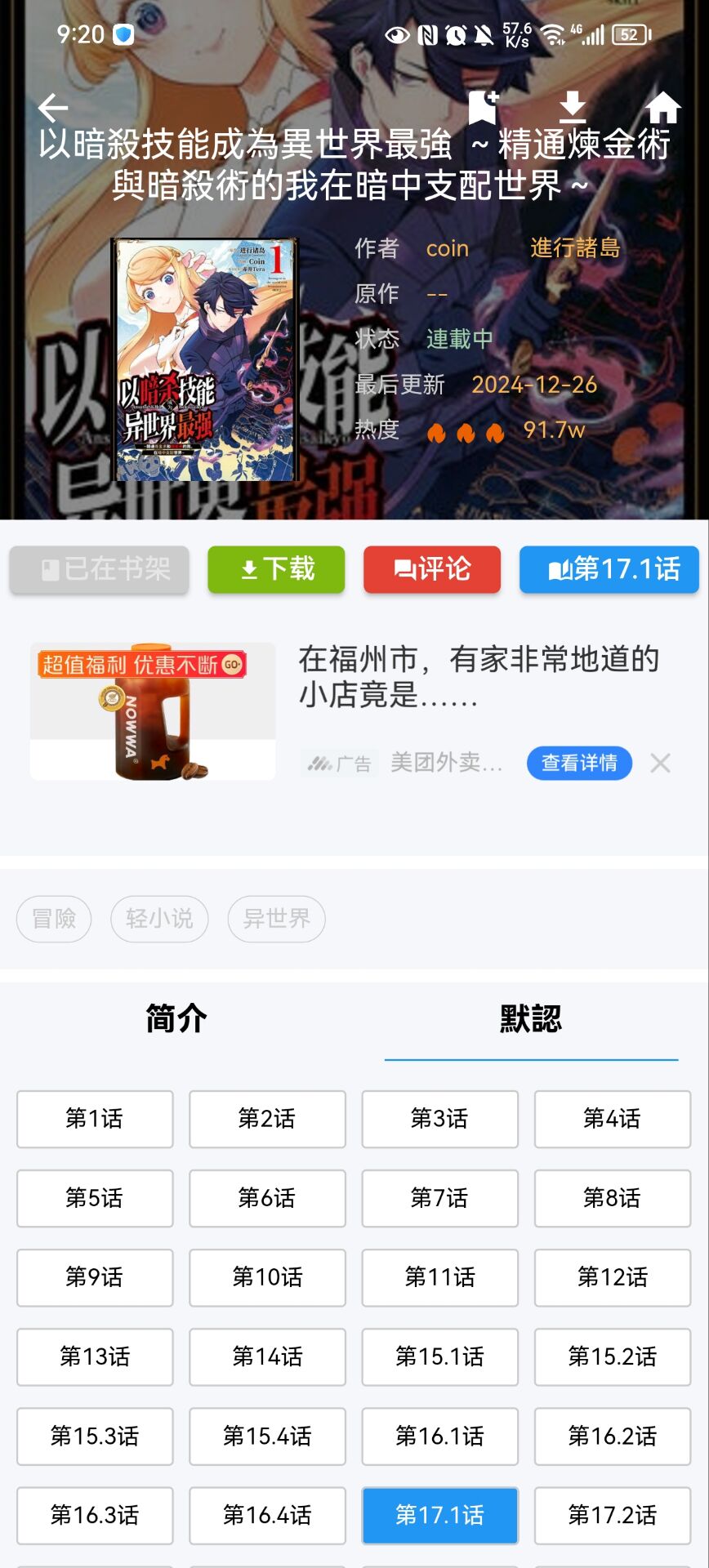 目前在看的几个:被追放的轉生重騎士用遊戲知識開無雙、月光下的異世界之旅、想要成為影之實力者、關於我轉生後成為史萊姆的那件事、異世界的魔法太落後了、重生的貓騎士與精靈娘的日常、轉生成為魔劍、平凡職業成就世界最強