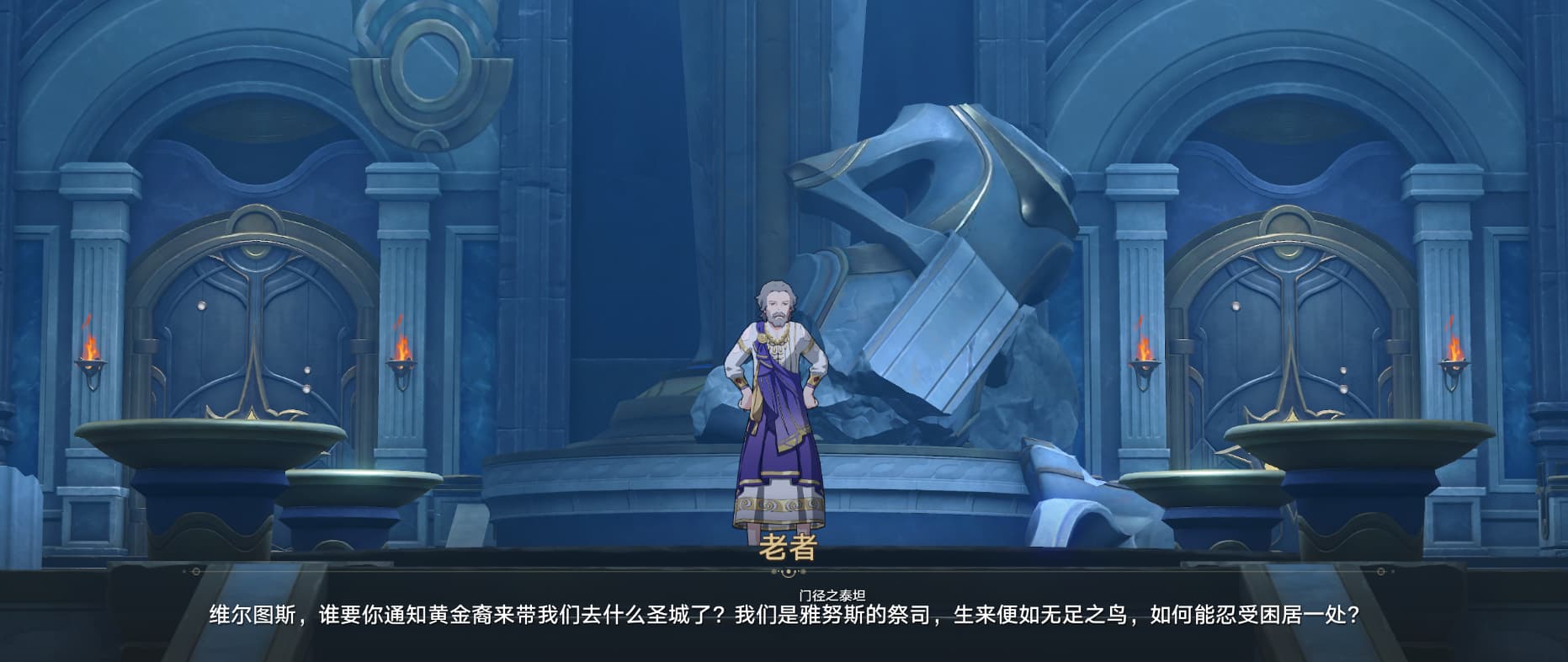 难民们渴望安宁,(门径泰坦)雅努斯的祭祀老头似乎不愿意离开,目前的敌人是尼卡多利(纷争之泰坦)